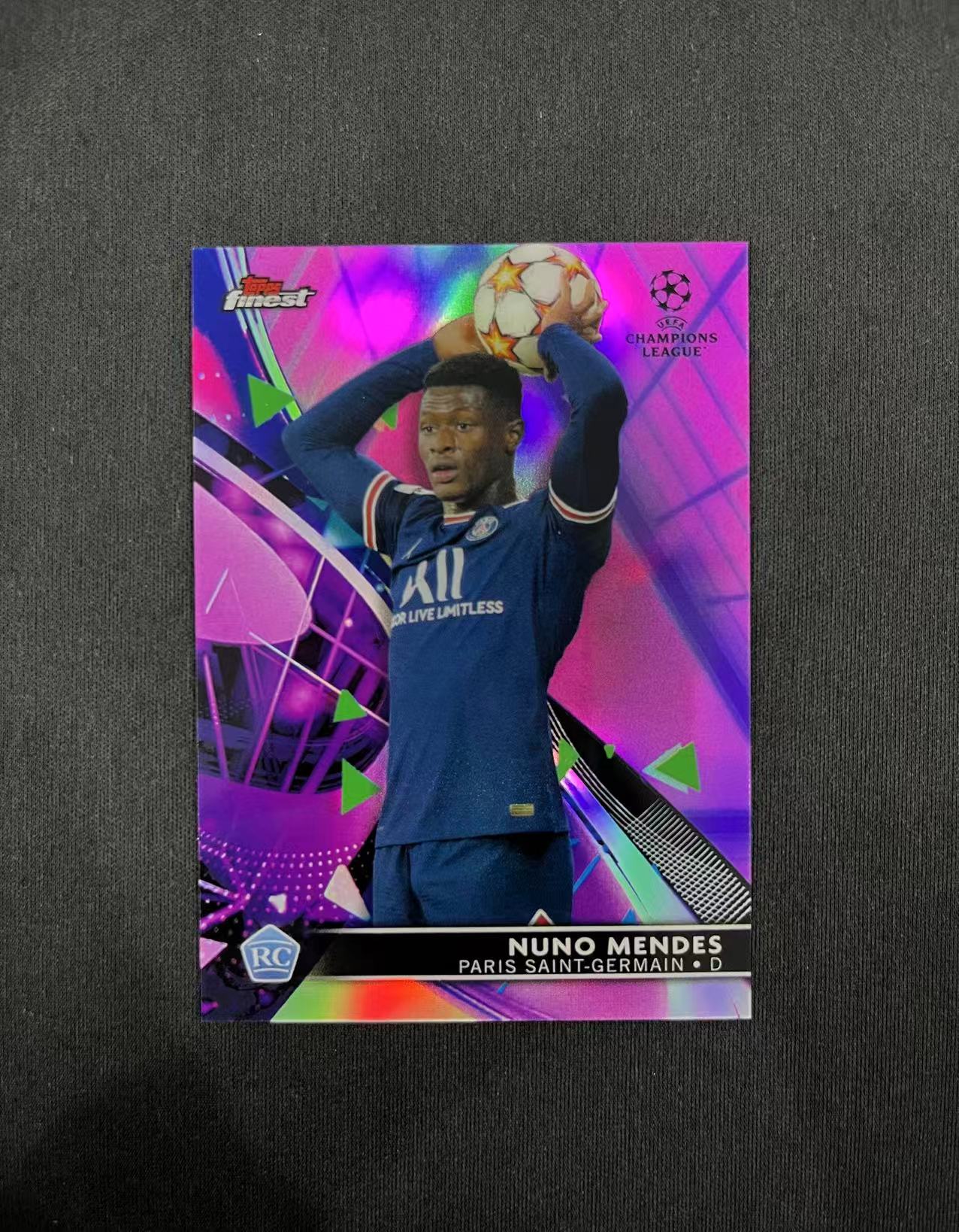 【长安代卖 截标预付80%】2021-22 Topps Finest 欧冠 PSG 巴黎圣日耳曼 新秀RC Nuno Mendes 努诺门德斯 新秀紫折 008/125编 微瑕看大图【ioweys】(S)(U)