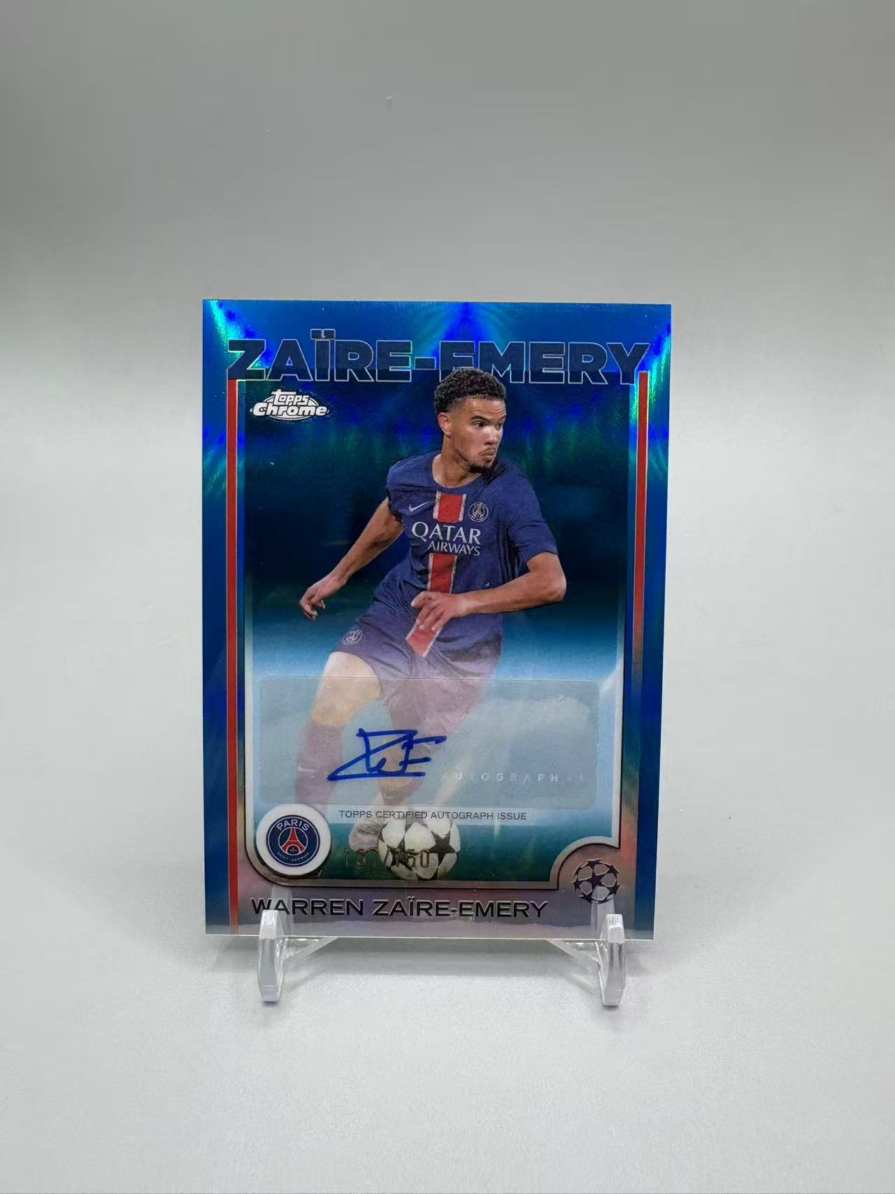2024-25 Topps Chrome Warren Zaïre-Emery 【灰灰代拍】全新chrome欧冠系列 巴黎圣日尔曼 扎伊尔 埃梅里 /150编蓝折签字 睡觉