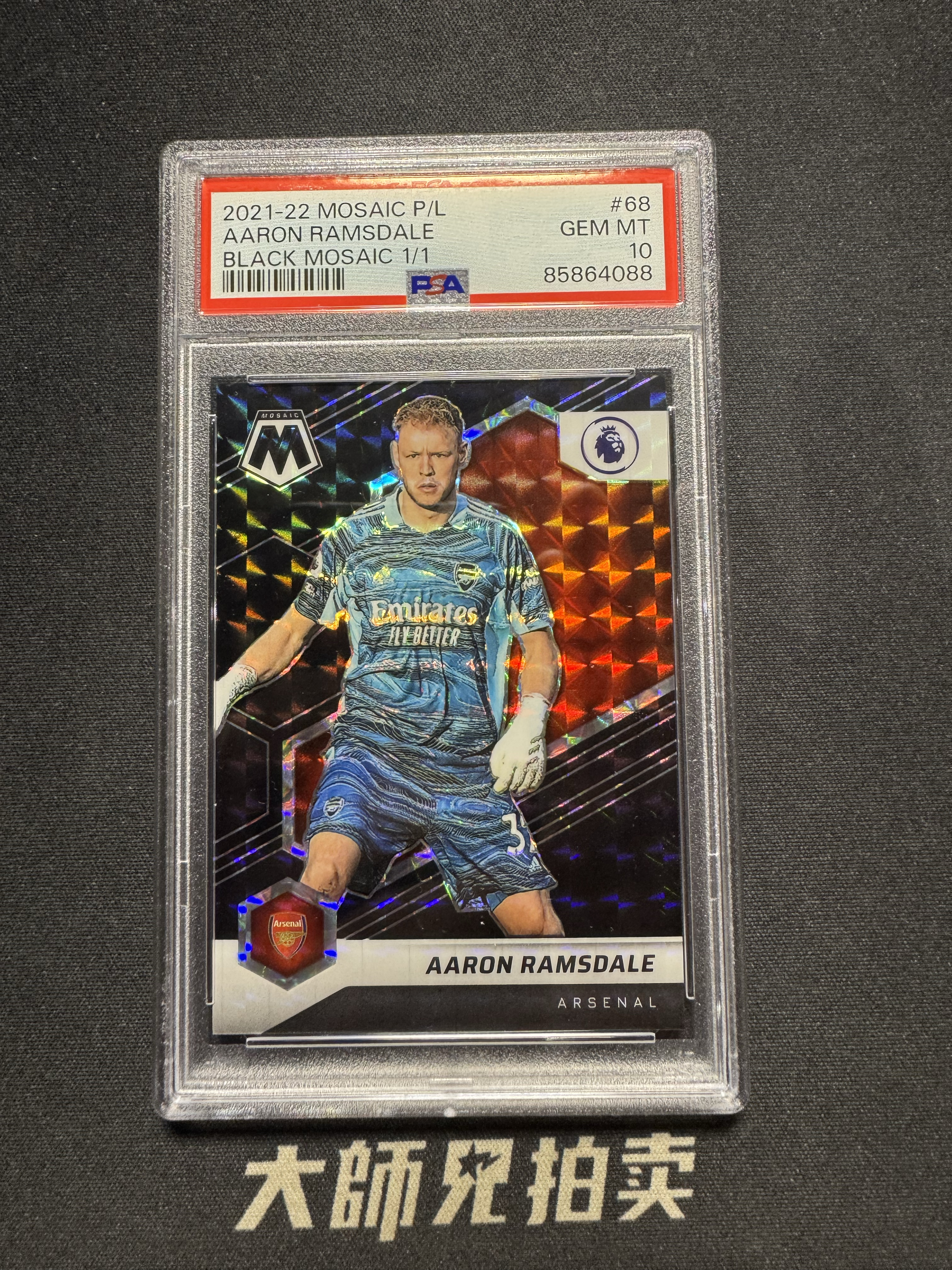 【大师兄拍卖】2021-22 panini mosaic AARON RAMSDALE 英超 阿森纳 拉姆斯代尔 马赛克 1/1编 ofo 黑折 黑马赛克折 psa10分 英格兰 南安普顿 -马哥-