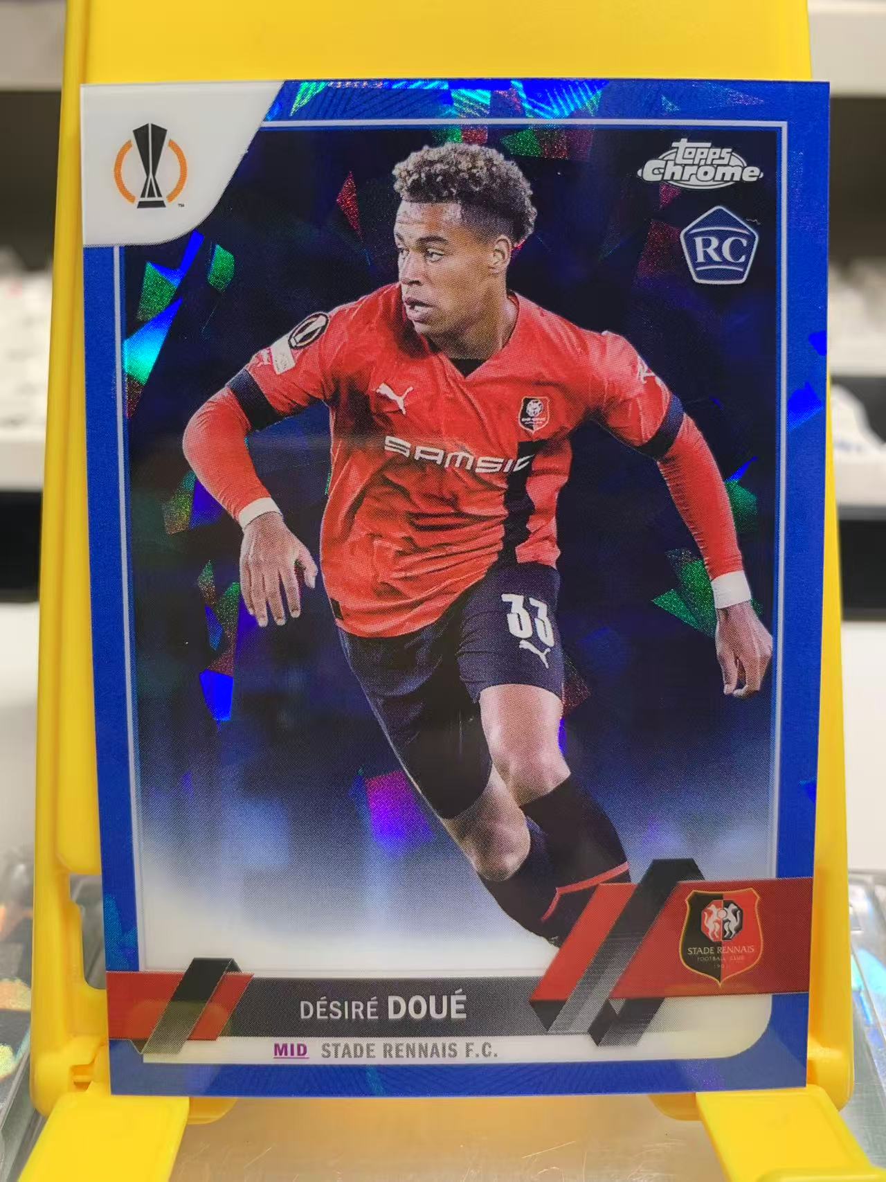 2022-23 Topps Chrome UEFA Sapphire Désiré Doué RC Doue 欧冠 蓝宝石 雷恩 杜埃 新秀 RC 蓝碎冰折 巴黎 未来转会 皇马 第一张