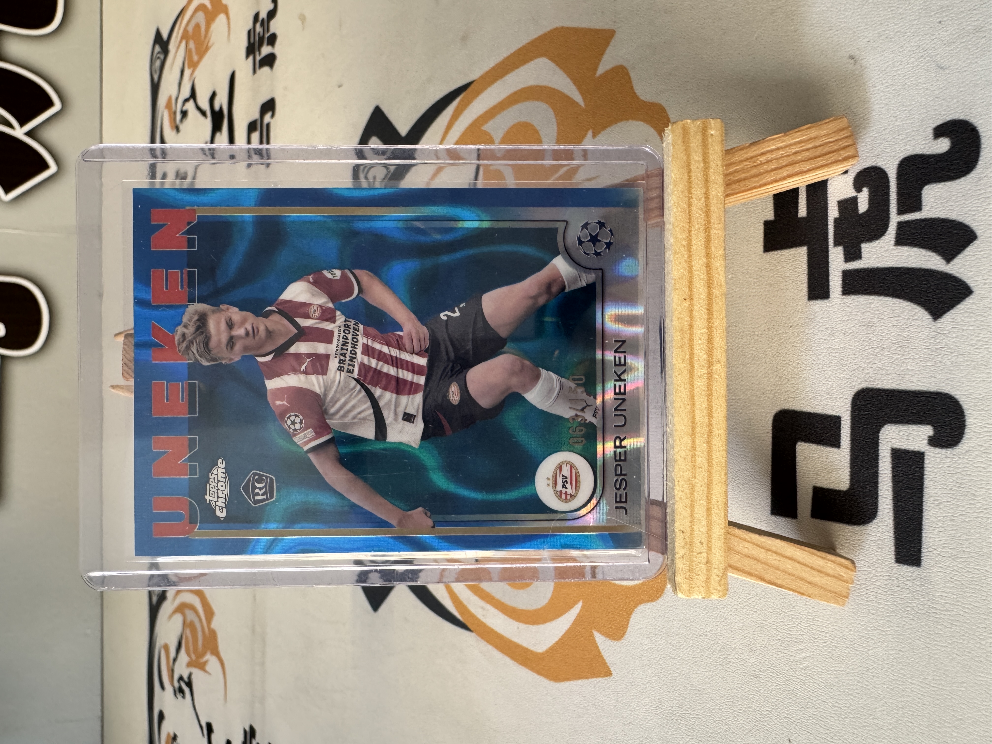 2024-25 Topps Chrome 欧冠TC 【马虎代拍】 jesper uneken 乌内肯 RC 新秀 150编 蓝折 卡品如图 HH96