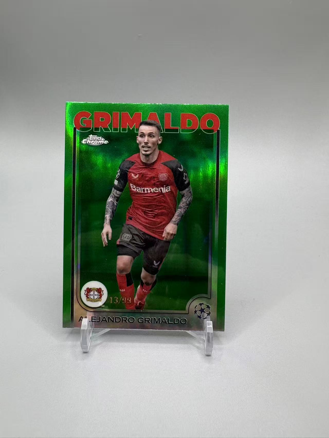 2024-25 Topps Chrome Alejandro Grimaldo 【灰灰代拍】全新chrome欧冠系列 勒沃库森 阿莉克丝 格里马尔多13 /99编绿折射 睡觉