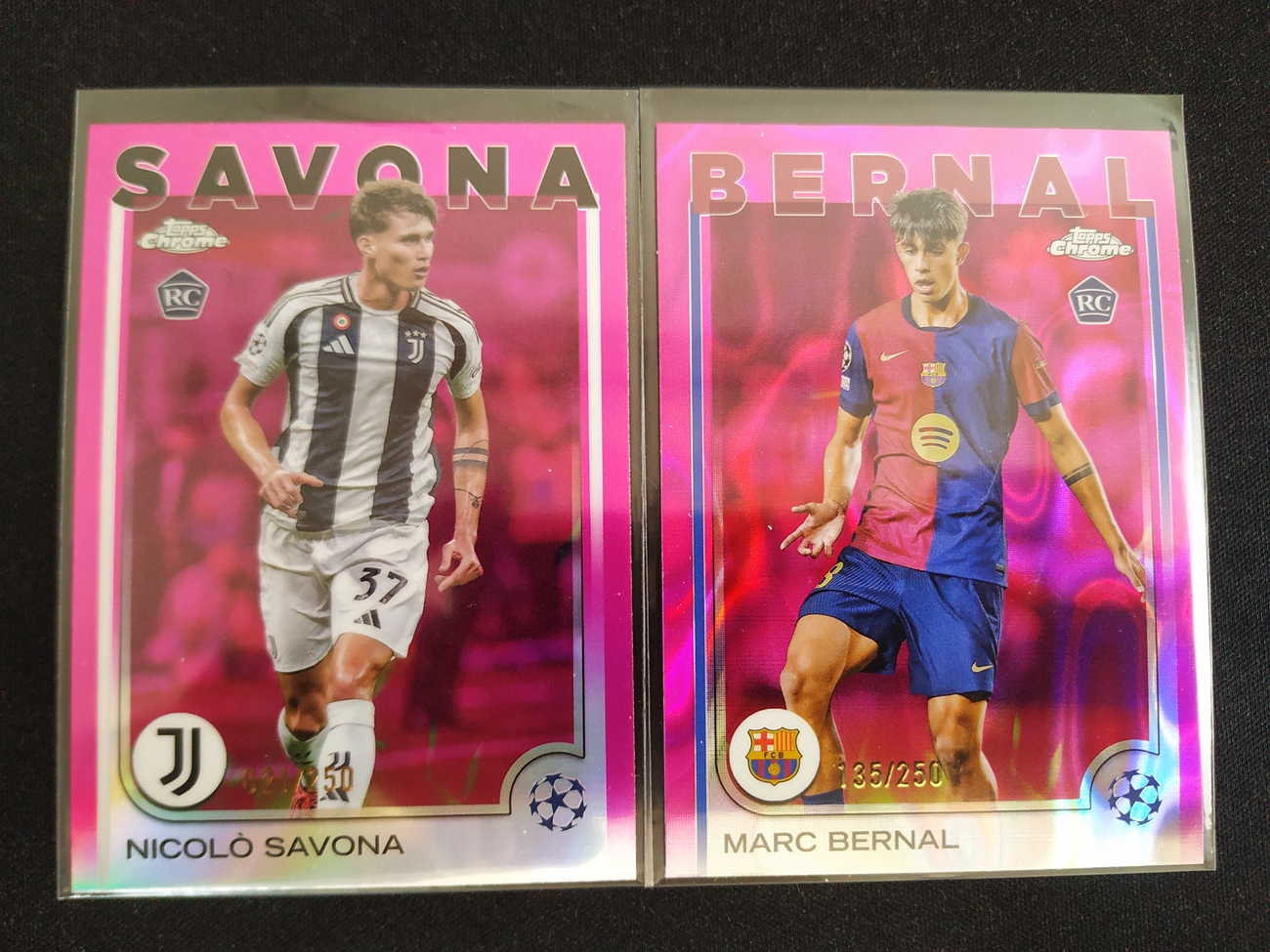 6-15【钢蛋儿拍卖】azch 123 topps 2024-25 Chrome UCC 尤文图斯 2张 RC 新秀 粉折 粉熔岩折 250编 尼科洛 萨沃纳 Nicolo Savona 马尔科 贝尔纳尔 Marc Bernal 卡品如图