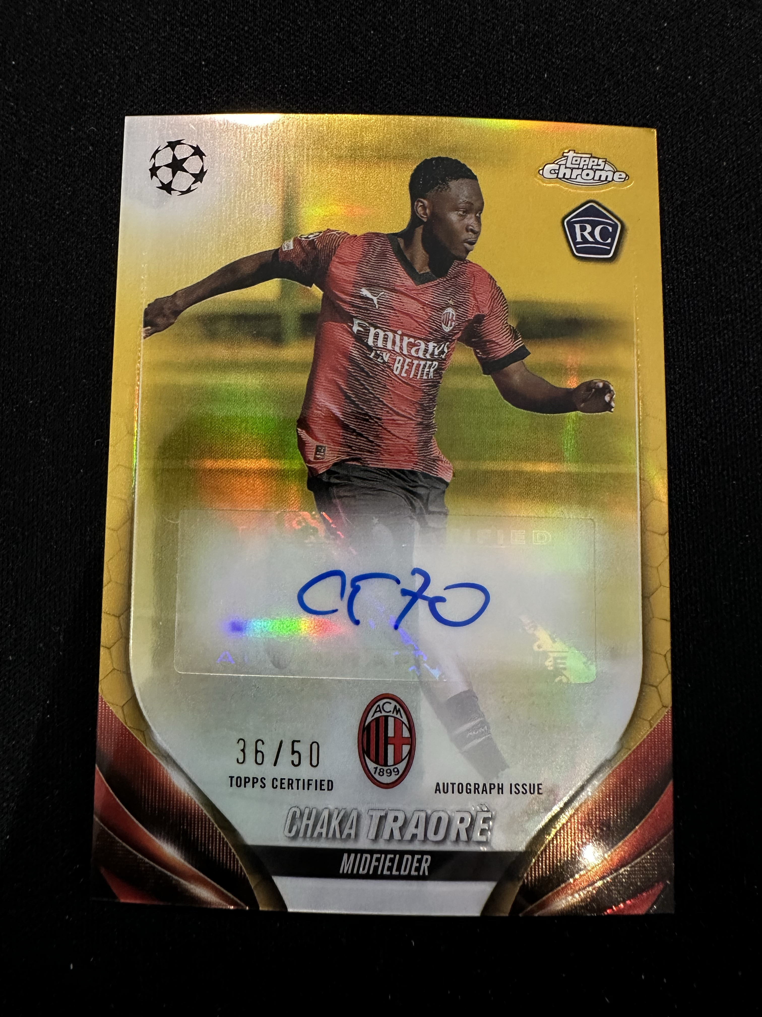 2024 Topps Chrome Chaka Traore RC 查卡 特雷奥拉 新秀 签名 签字 AC米兰 科特迪瓦 TC 欧战 正金折 签字 w9