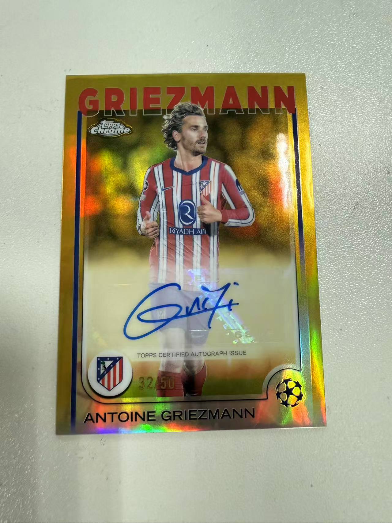 2024-25 TOPPS CHROME ANTOINE GRIEZMANN 格列兹曼 签字 50编 32/50 金折签 正金折 马竞 马德里竞技 巴萨 巴塞罗那 法国 欧冠 卡品如图