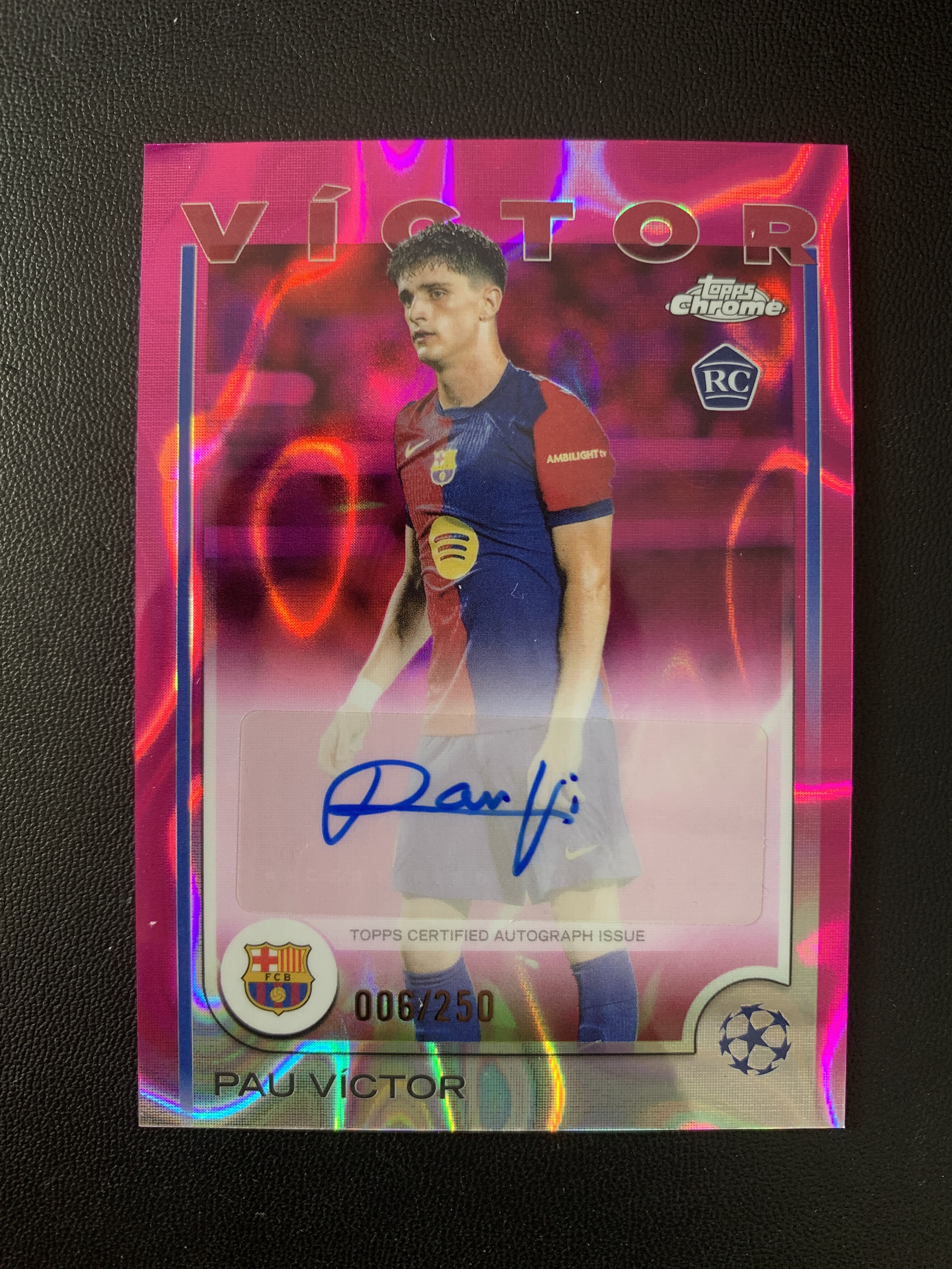 2025 Topps Chrome 欧冠 Pau Victor 保 维克托 签字 粉熔岩折 250编 粉折 巴萨 新秀 RC 巴塞罗那 专收必备