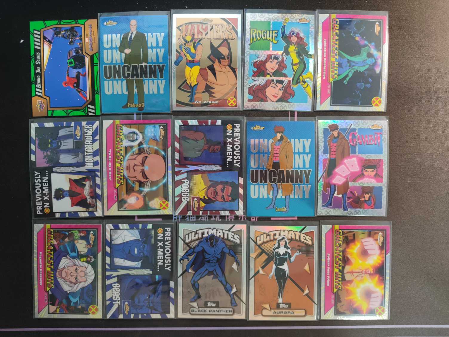 肿猫拍卖0612T2271:漫威 lots如图 蜘蛛侠 暴风女 野兽 水蛭 极光 黑豹 牌皇 金刚狼 X教授 罗刹女等 折射 特卡 lots不保品介意勿拍 不累计6229