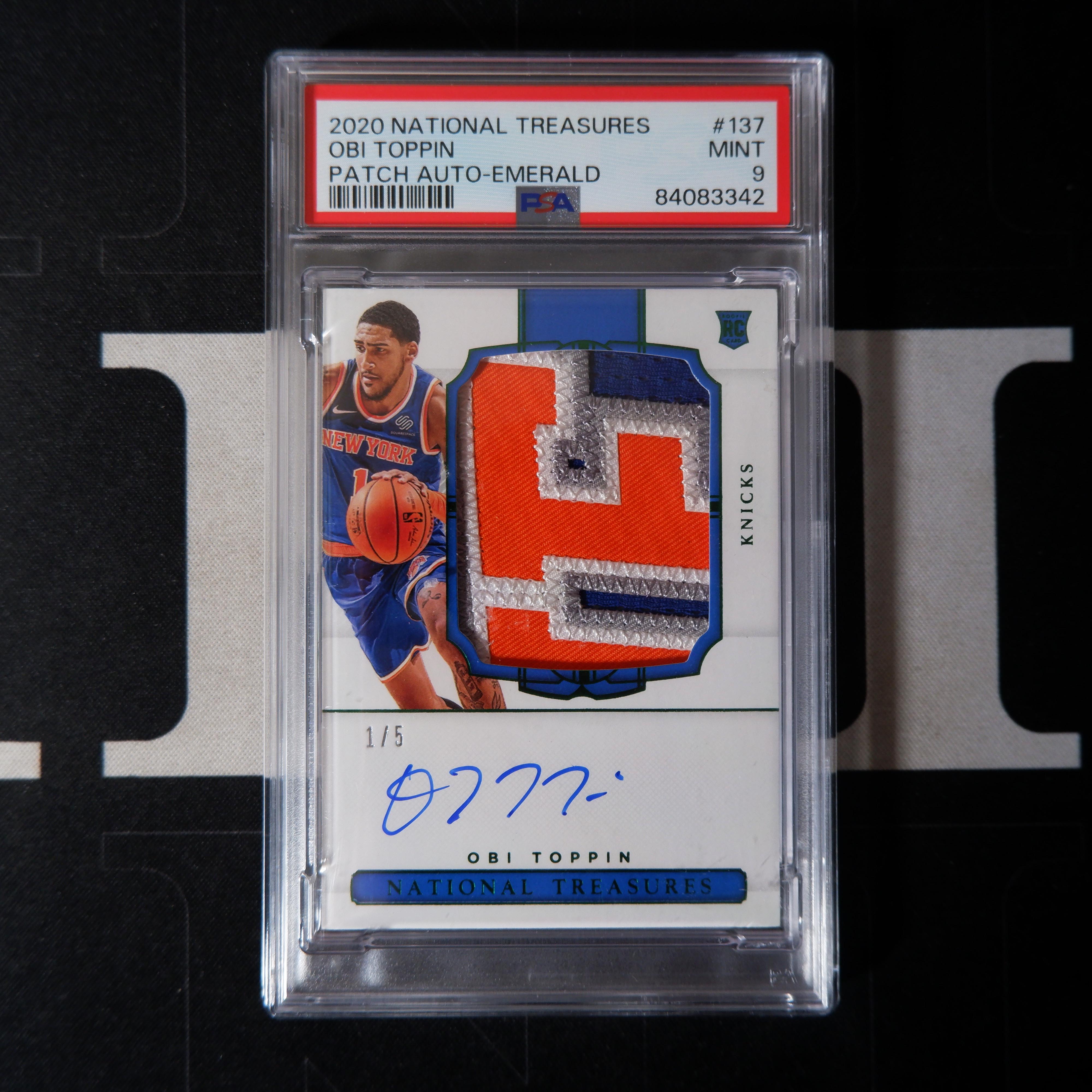2020-21 Panini National Treasures Obi Toppin RC 【小町拍卖】国宝 奥比 托平 纽约 新秀 步行者 5编 同背 1/1 绿平行 正RPA PSA9 壳微瑕