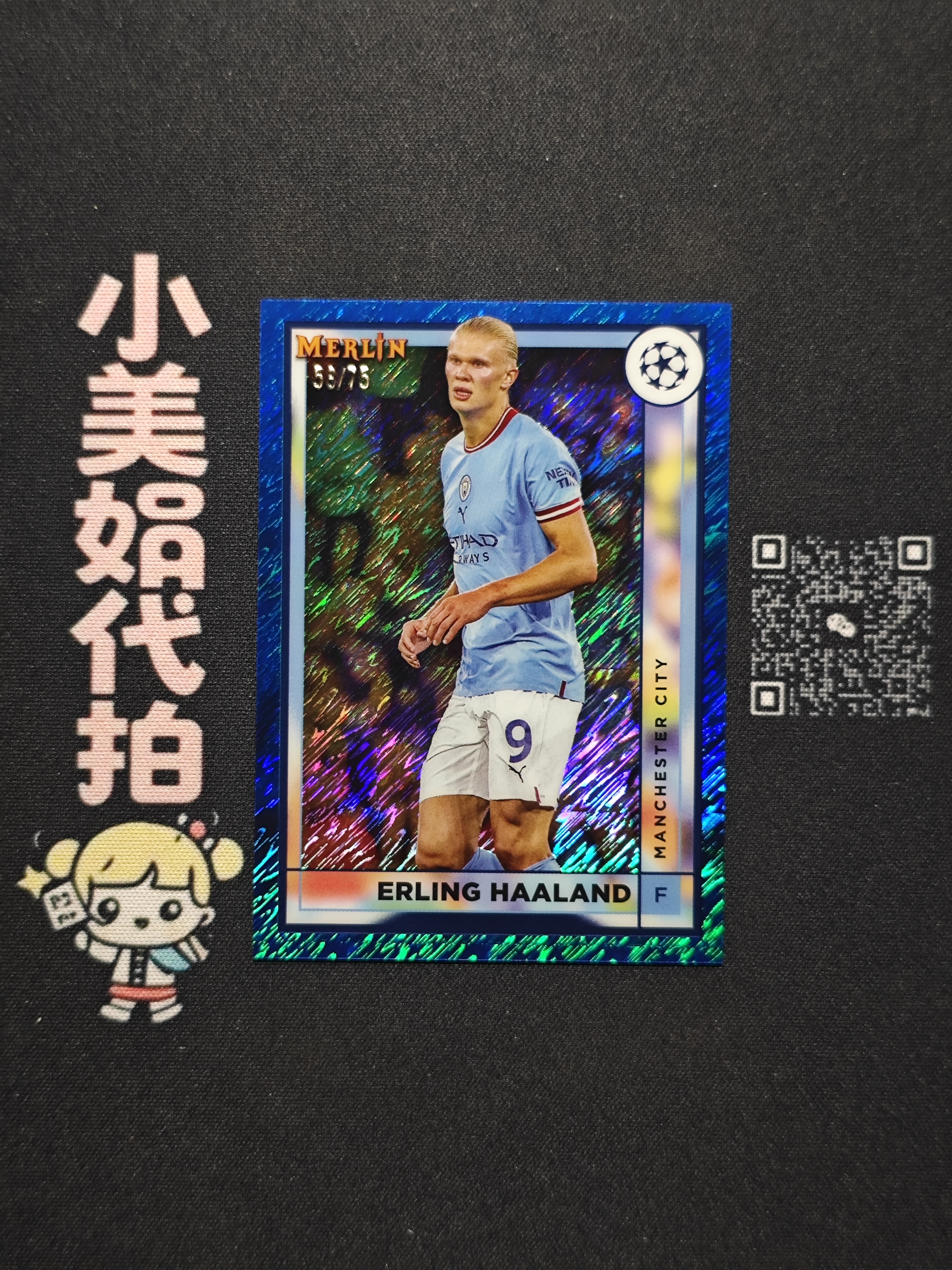 2022-23 Topps Merlin Erling Haaland 哈兰德 曼城 魔人布欧 新秀 欧战 梅林 蓝shimmer折 折射 58/75编 德布劳内 罗德里队友 专收必备 W总