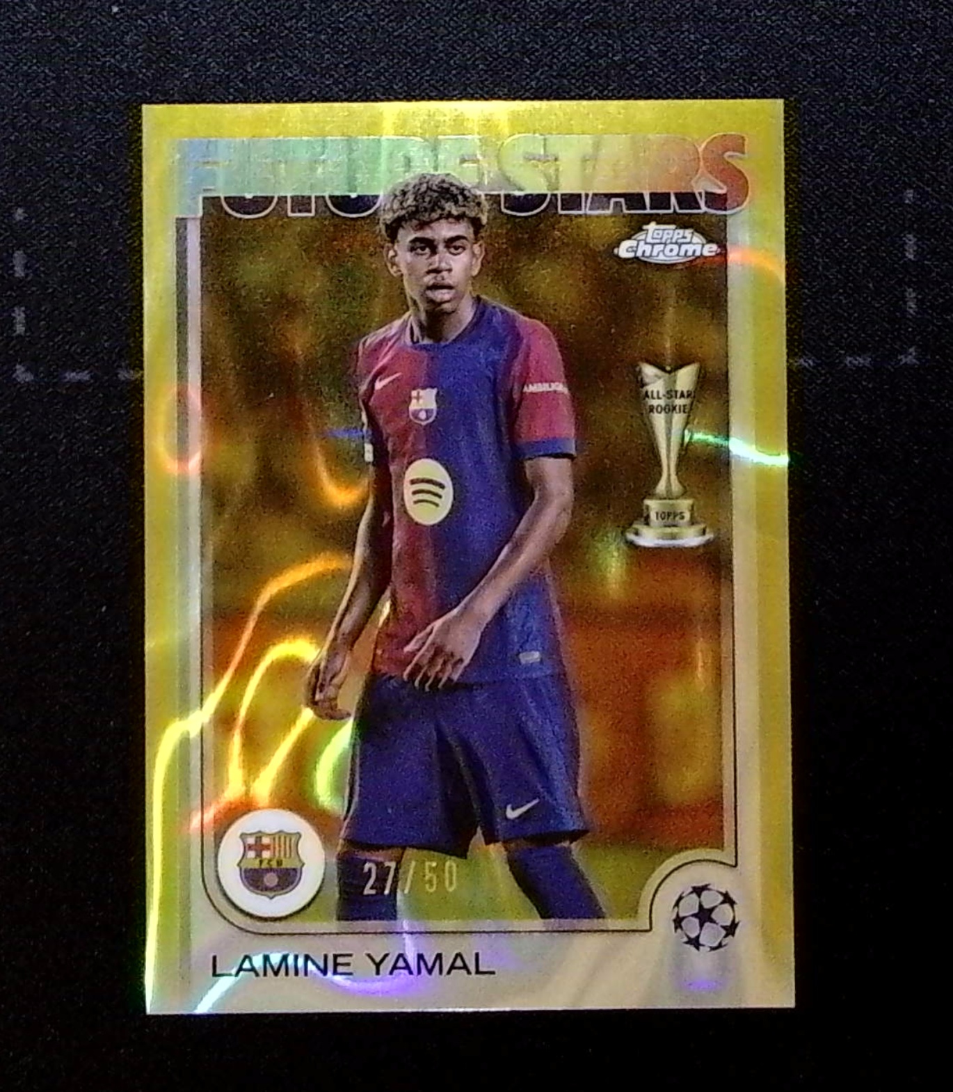2025 Topps Chrome Lamine Yamal 欧冠tc 拉明 亚马尔 巴萨 巴塞罗那 西班牙 Future Stars base 金熔岩折 27/50编 收藏必备 卡品如图(西瓜)