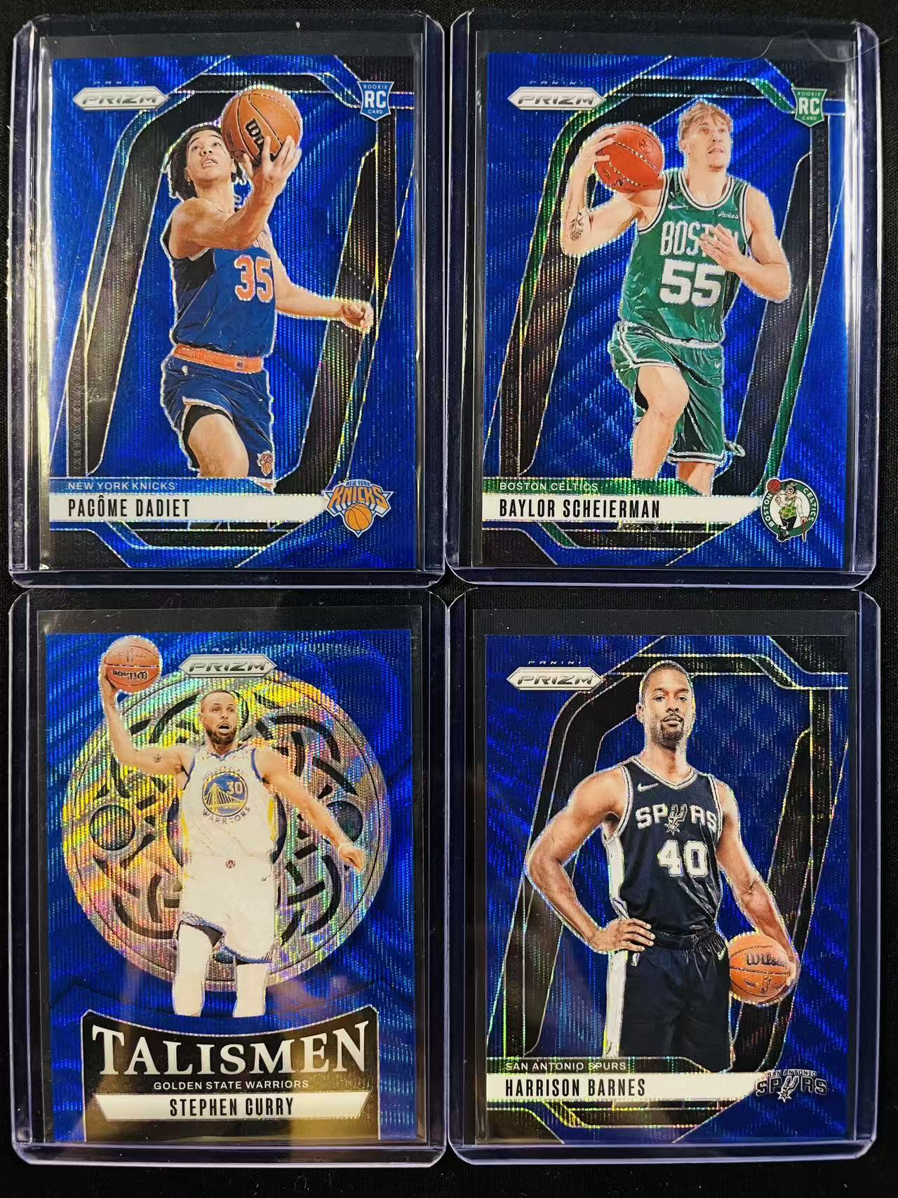 2024-25 Panini Prizm 勇士马刺凯尔特人尼克斯 库里 护身符特卡 巴恩斯 新秀RC 达迪耶 沙伊尔曼 蓝波纹折 125编175编 不保卡品 洛北拍卖 HY致富2151