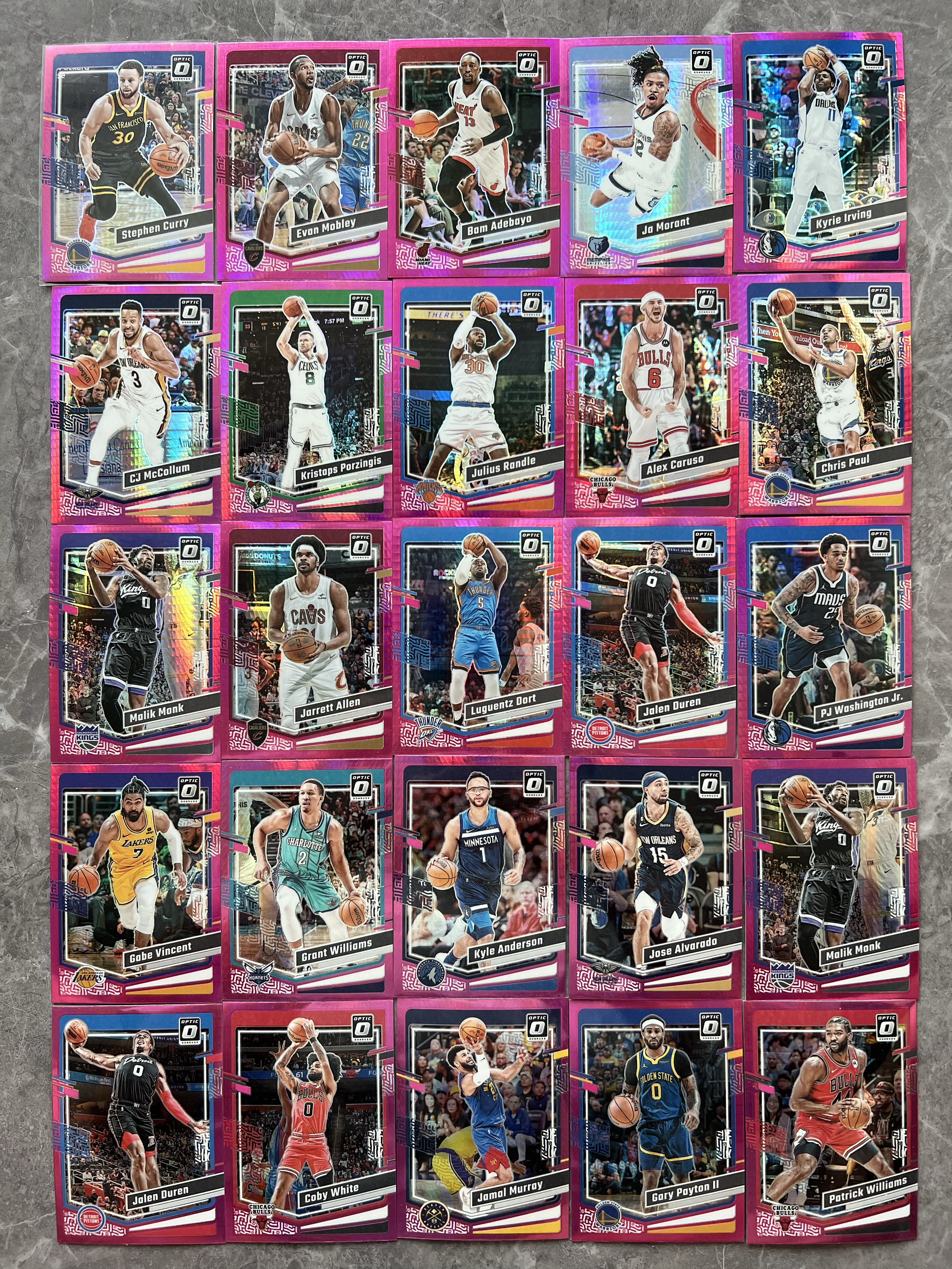 篮球球星卡 23-24 Optic 25张打包出售 库里 莫布利 阿德巴约 莫兰特 欧文 麦科勒姆 波尔津吉斯 兰德尔 卡鲁索 保罗 多尔特 等领衔 所见即所得 全 粉折 凑套必备 值得收藏