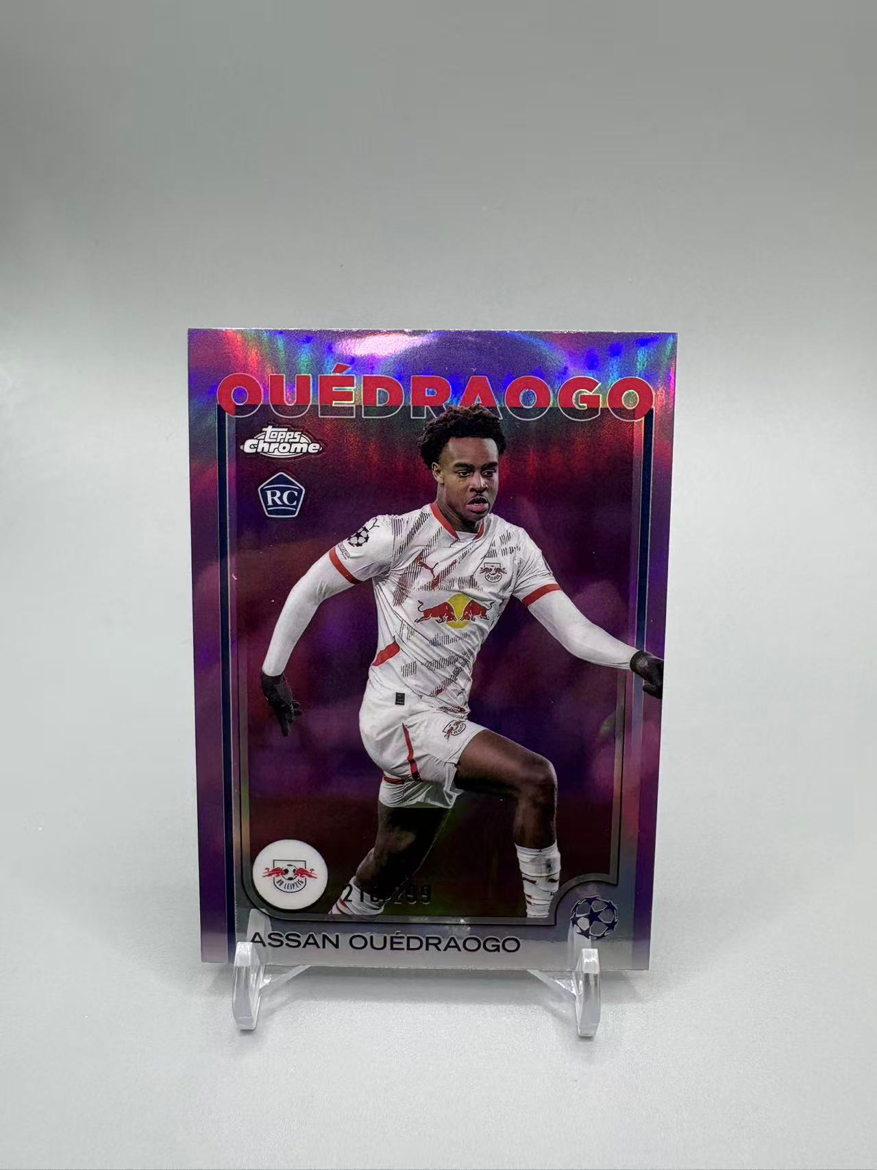 2024-25 Topps Chrome ouedraogo RC 【灰灰代拍】全新 chrome欧战系列 莱比锡红牛 韦德拉奥果 /299编紫折 清欢