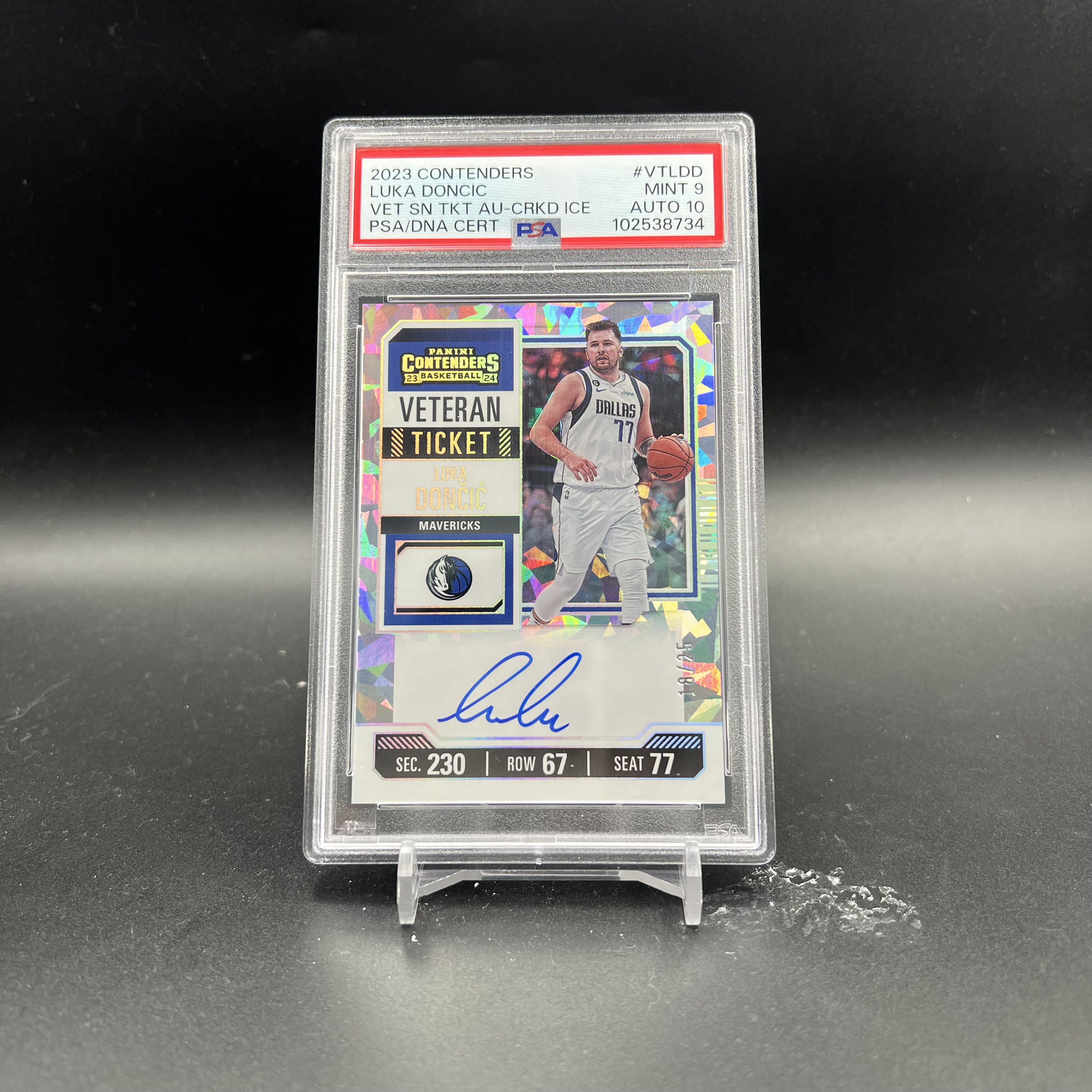 H58 2023-24 Panini Contenders球票 独行侠 湖人 Luka Doncic 东契奇 077 老兵签字 碎冰折 折射 签字 卡签/25编 PSA9签字10 生活大爆炸