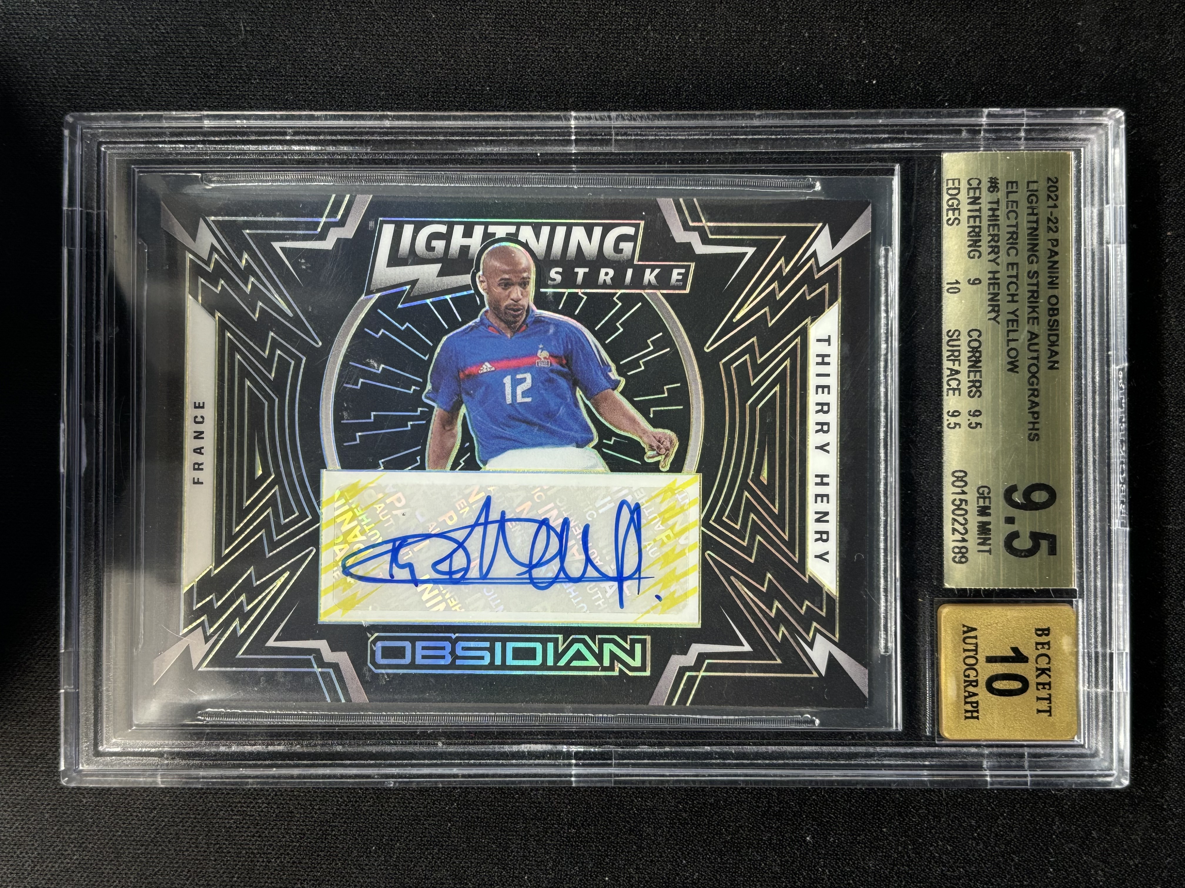 2021-22 黑曜石 Obsidian Thierry Henry 国家队 法国 蒂埃里 亨利 大帝 02/10编 相加同背 签字 黄折 折射 BGS9.5/10分金标评级卡-八面佛-【小幻拍卖】A