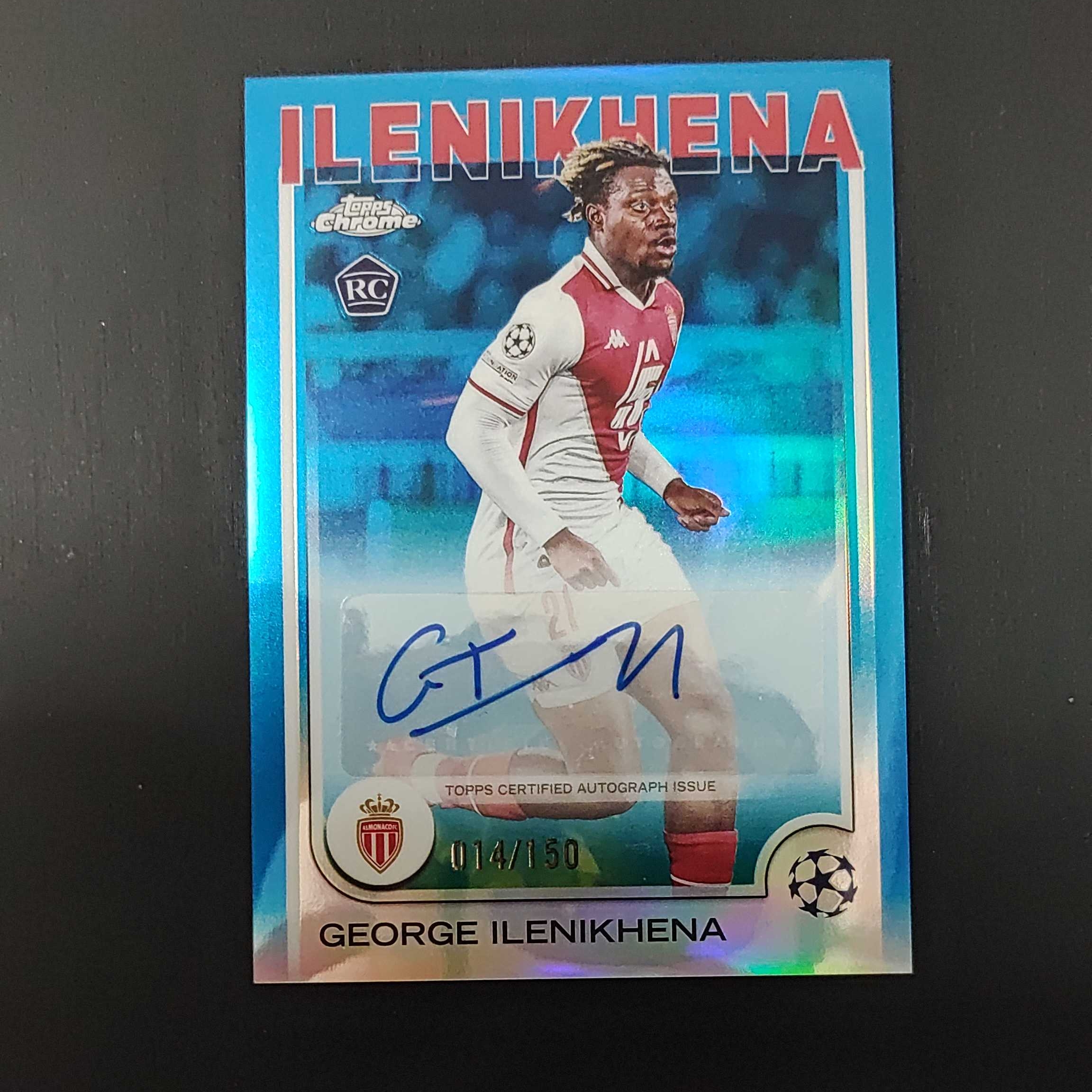 2025 Topps Chrome George Ilenikhena 伊莱尼赫纳 阳阳韩哥11 Chrome系列 14/150编 RC新秀 TC欧冠 新秀 签字 蓝熔岩折 150编 摩纳哥 卡品如图