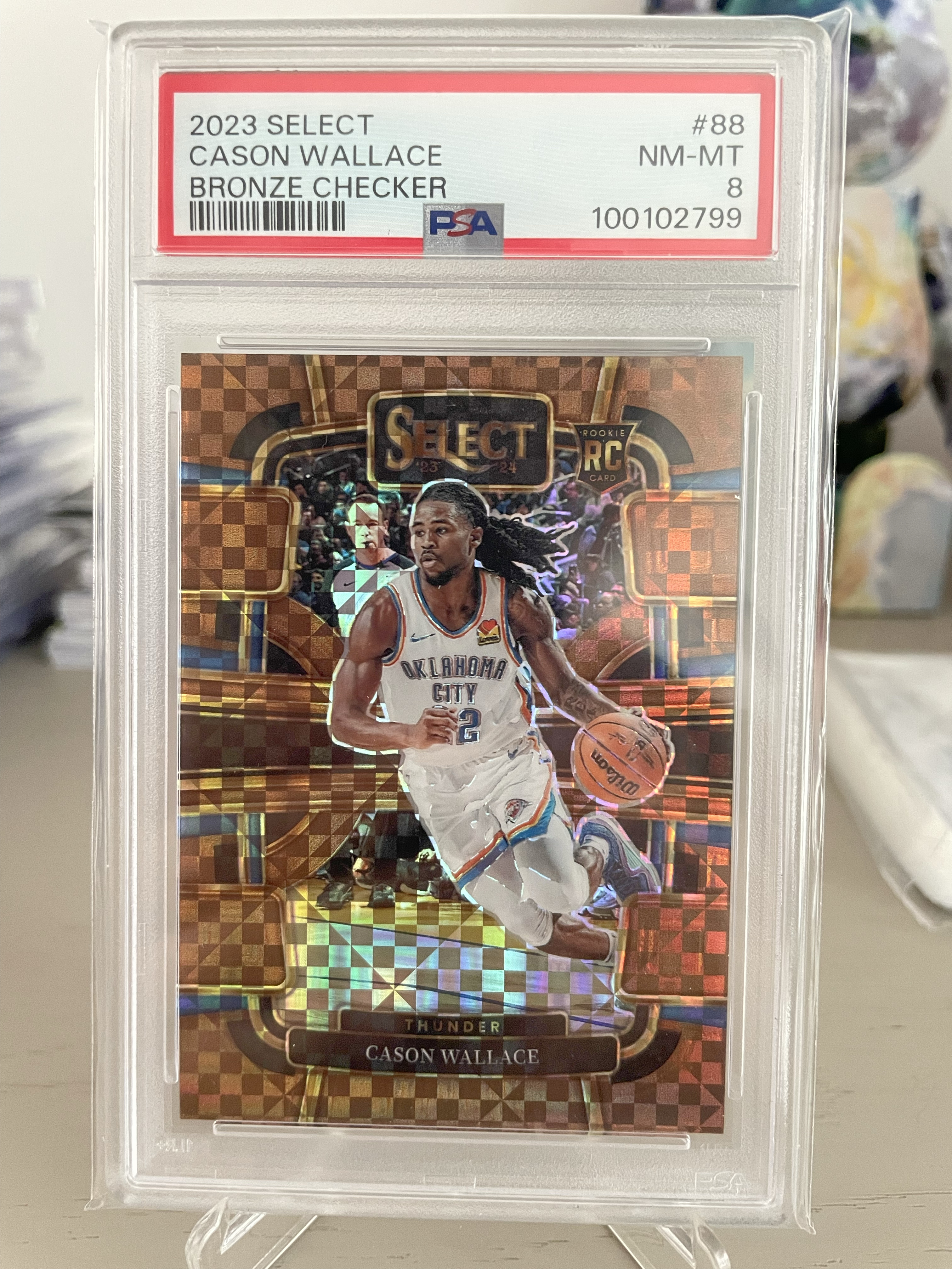 2023-24 Panini Select Cason Wallace RC 雷霆 卡森 华莱士 RC 新秀 棕棋盘折 46/49编 卡品如图 铜棋盘折 psa8