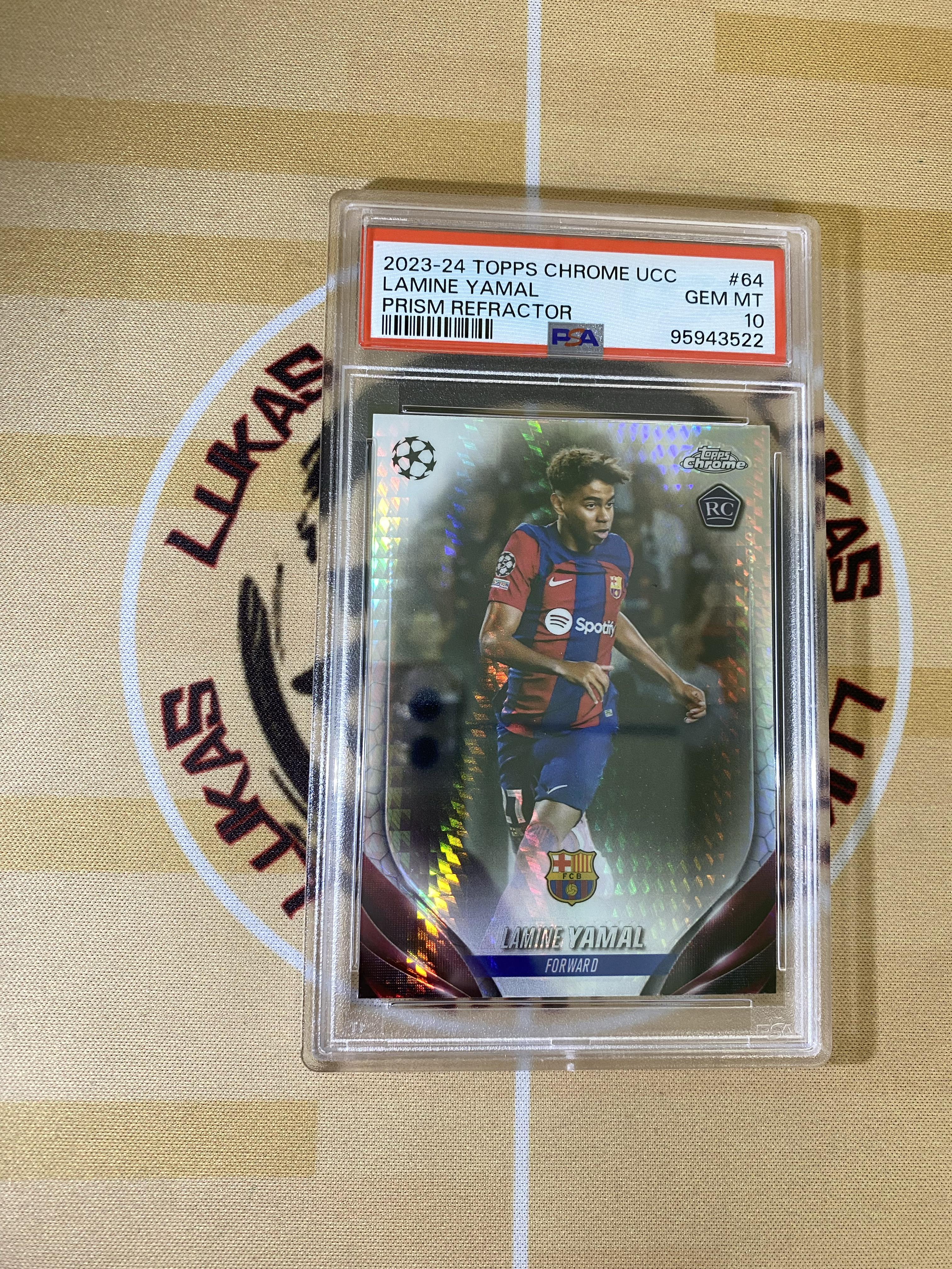 2023-24 Topps TOPPS CHROME UEFA CLUB COMPETITIONS Lamine Yamal 撸卡厮 亚马尔 新秀 格子折 棱镜折 新秀折 PSA10 完美品(cxc)
