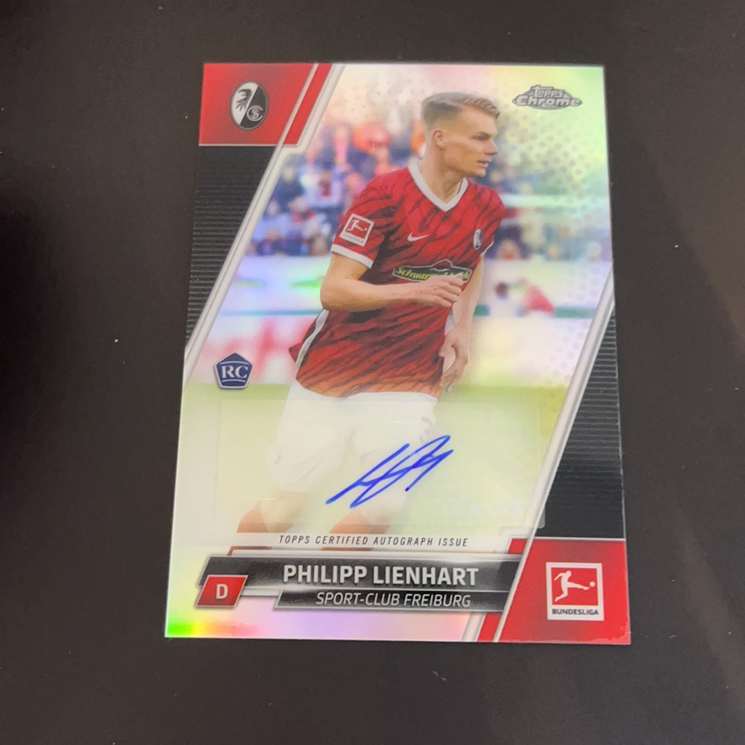 2021-22 Topps Chrome Philipp Lienhart 德甲 弗莱堡 新秀 RC 林哈特 银折 签字 从皇马买断 天赋异禀 球队未来核心 错过拍大腿 Q