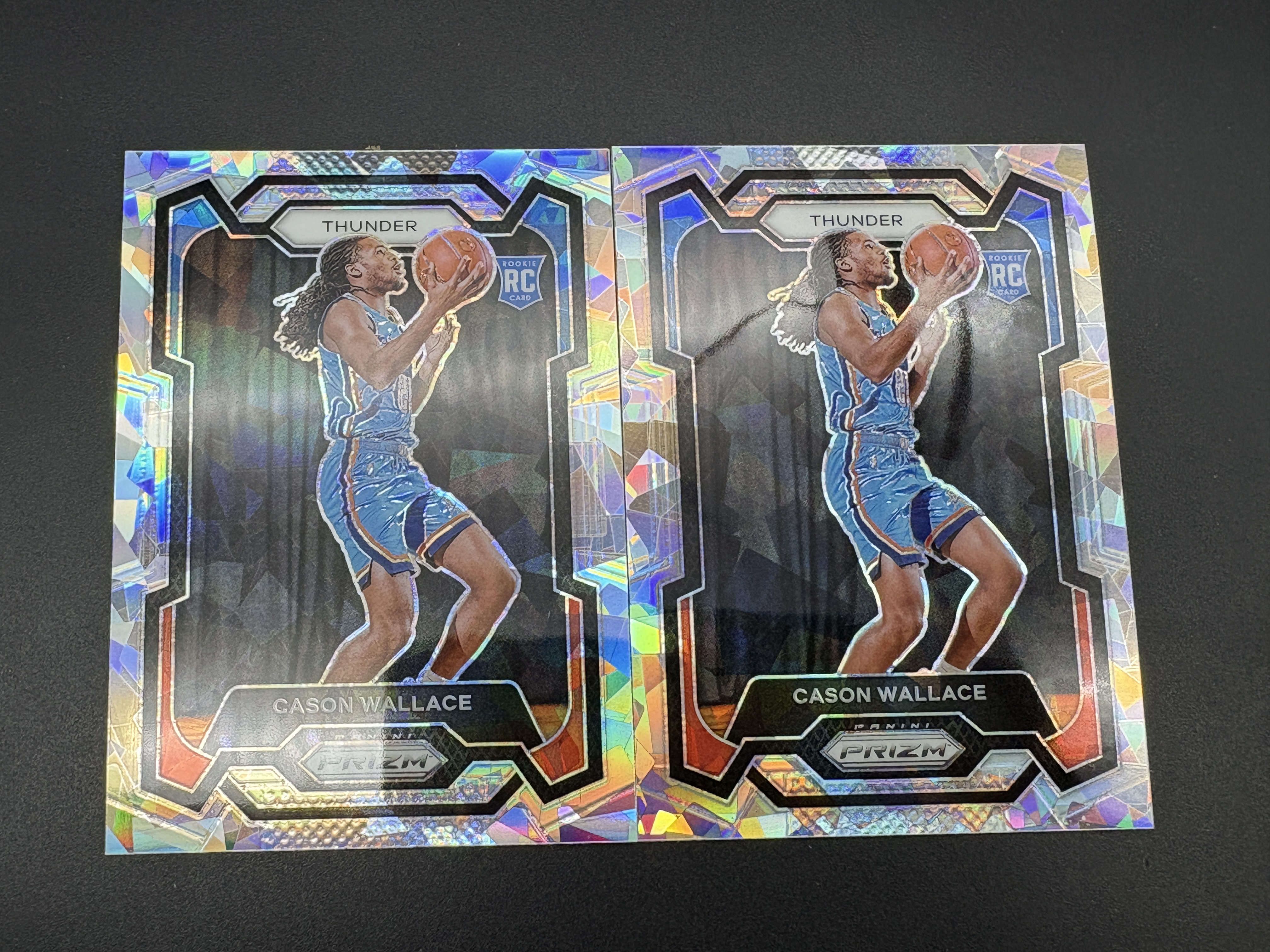 2023-24 Panini Prizm Cason Wallace RC 【湖水蓝拍卖】凯森 华莱士 新秀 雷霆 PZ 碎冰折 折射 银折 2张lot 专收必备 402jy