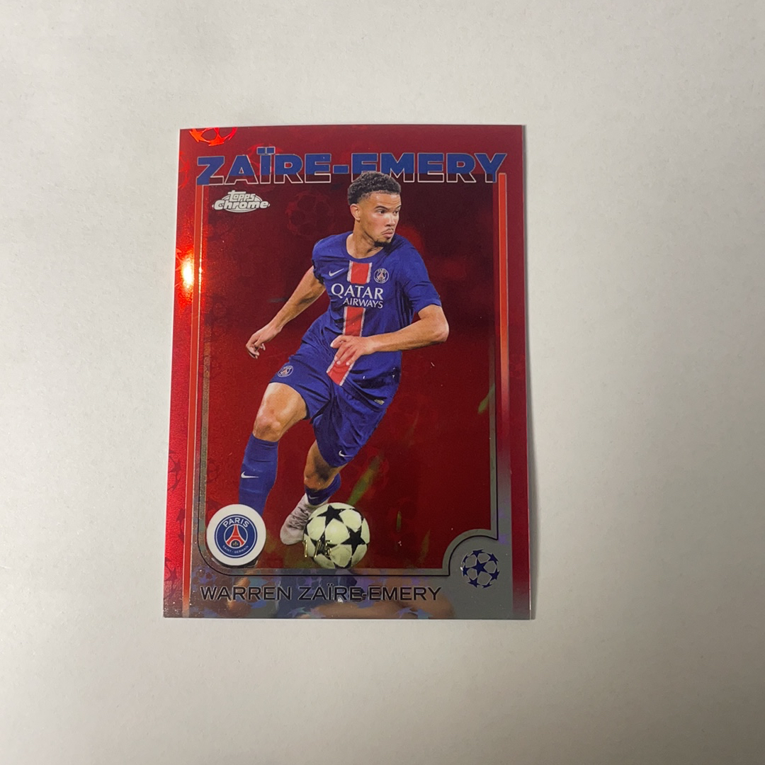2025 Topps Chrome Warren Zaïre-Emery 欧冠TC 伦敦mega独占 大巴黎 法国 巴黎圣日耳曼 埃梅里 巴黎太子 红折 1/5编 首编 刚开出就上拍 卡品完美 阴