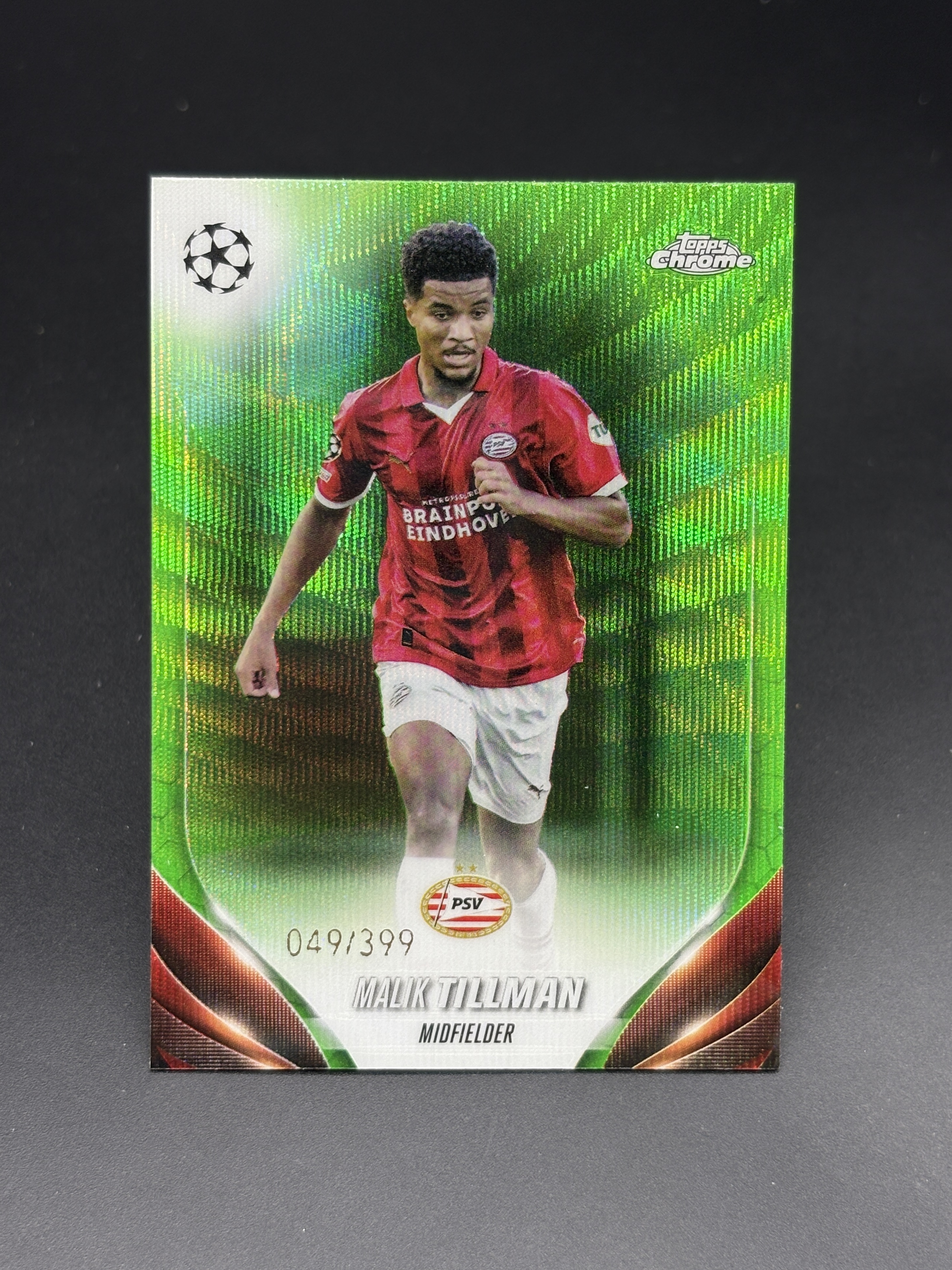2024 Topps Chrome Malik Tillman 【湖水蓝拍卖】蒂尔曼 埃因霍温 欧战TC 欧冠 绿波纹折 399编 专收必备 小b