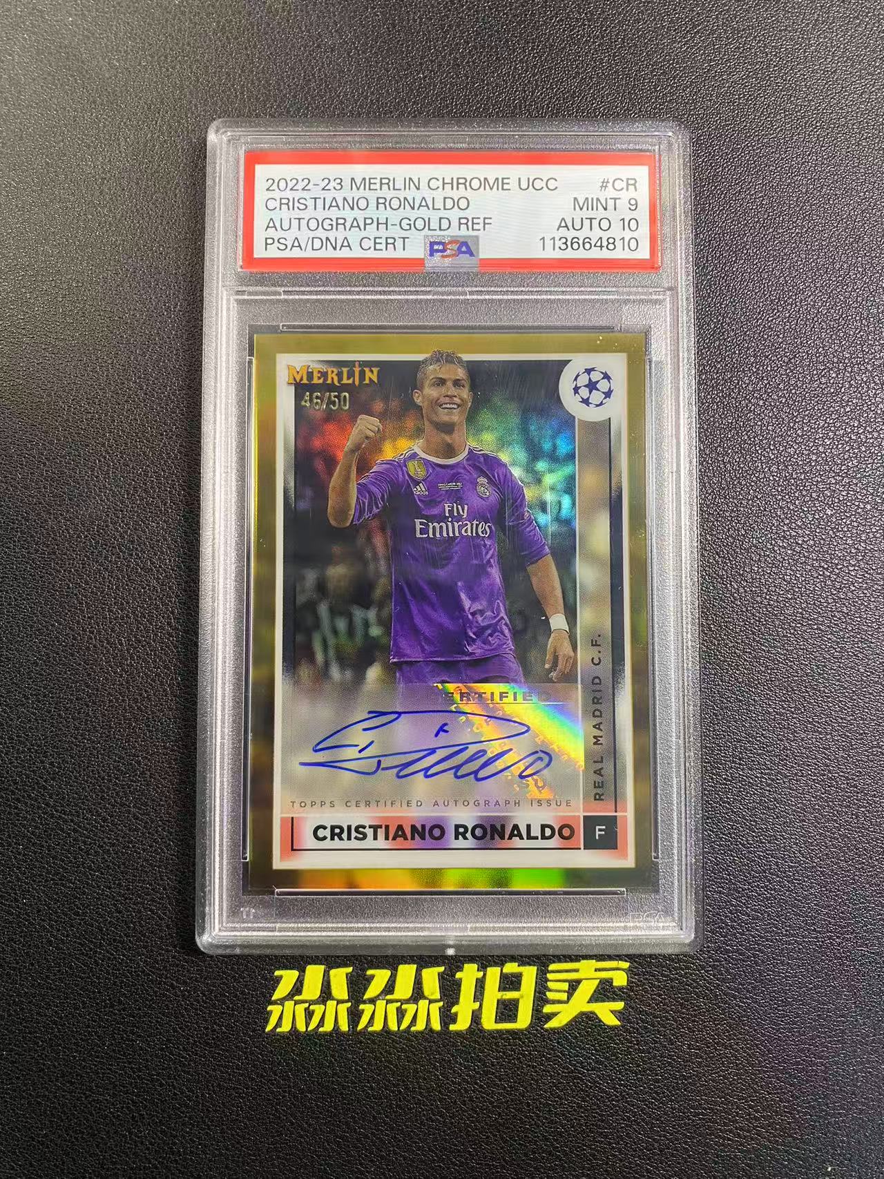 2022-23 【淼淼拍卖】 Topps Merlin Cristiano Ronaldo 梅林 C罗 罗纳尔多 46/50编 金折 曼联 皇马 尤文图斯 葡萄牙 PSA评级 签字10分 卡品9分