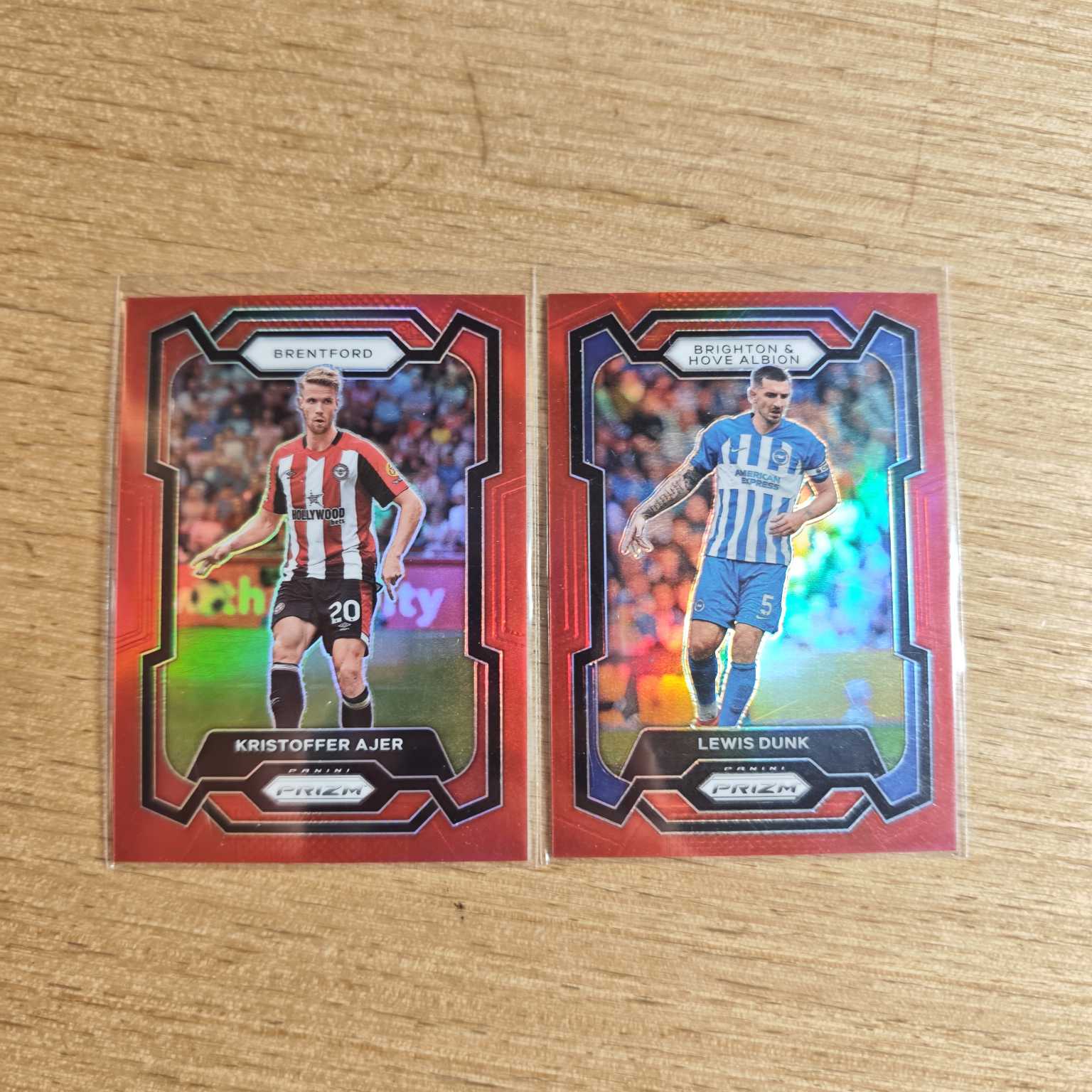 【HY拍卖】2023-24 Panini Prizm英超 布莱顿 Lewis Dunk刘易斯邓克 布伦特福德 Kristoffer Ajer阿耶 红折 折射 /199编 折射 2张打包