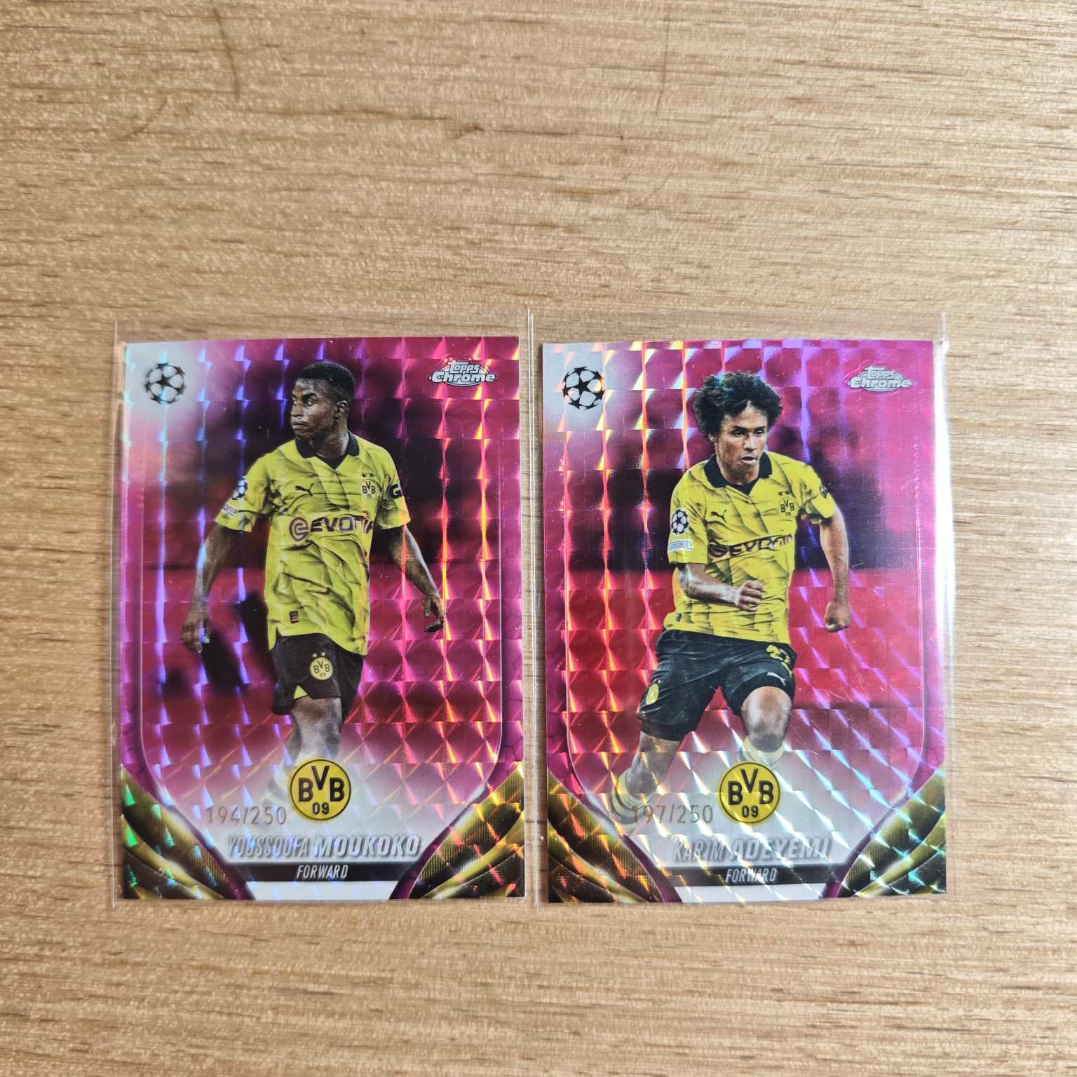 【HY拍卖】2023-24 Topps Chrome欧战 多特蒙德 德国 Youssoufa Moukoko穆科科 Karim Adeyemi阿德耶米 粉格子折 粉折 折射 /250编 2张打包