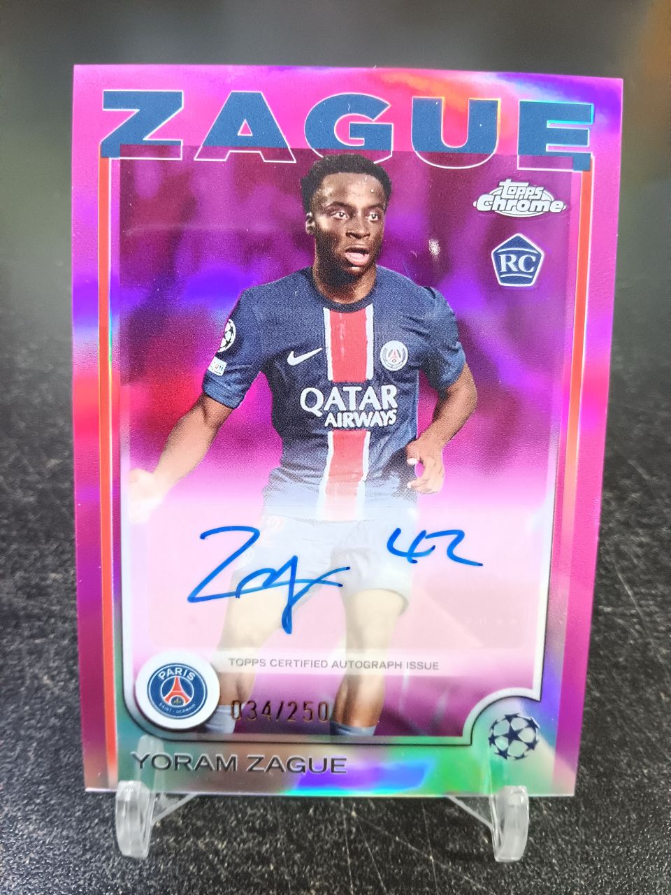 【浩行拍卖 截标预付82%】2025 Topps Chrome Yoram Zague 欧冠 大巴黎 约拉姆 扎格 新秀 rc 粉折 折射 签字 34/250编 专收必备 瑕疵看图「提倡」0612A01牟