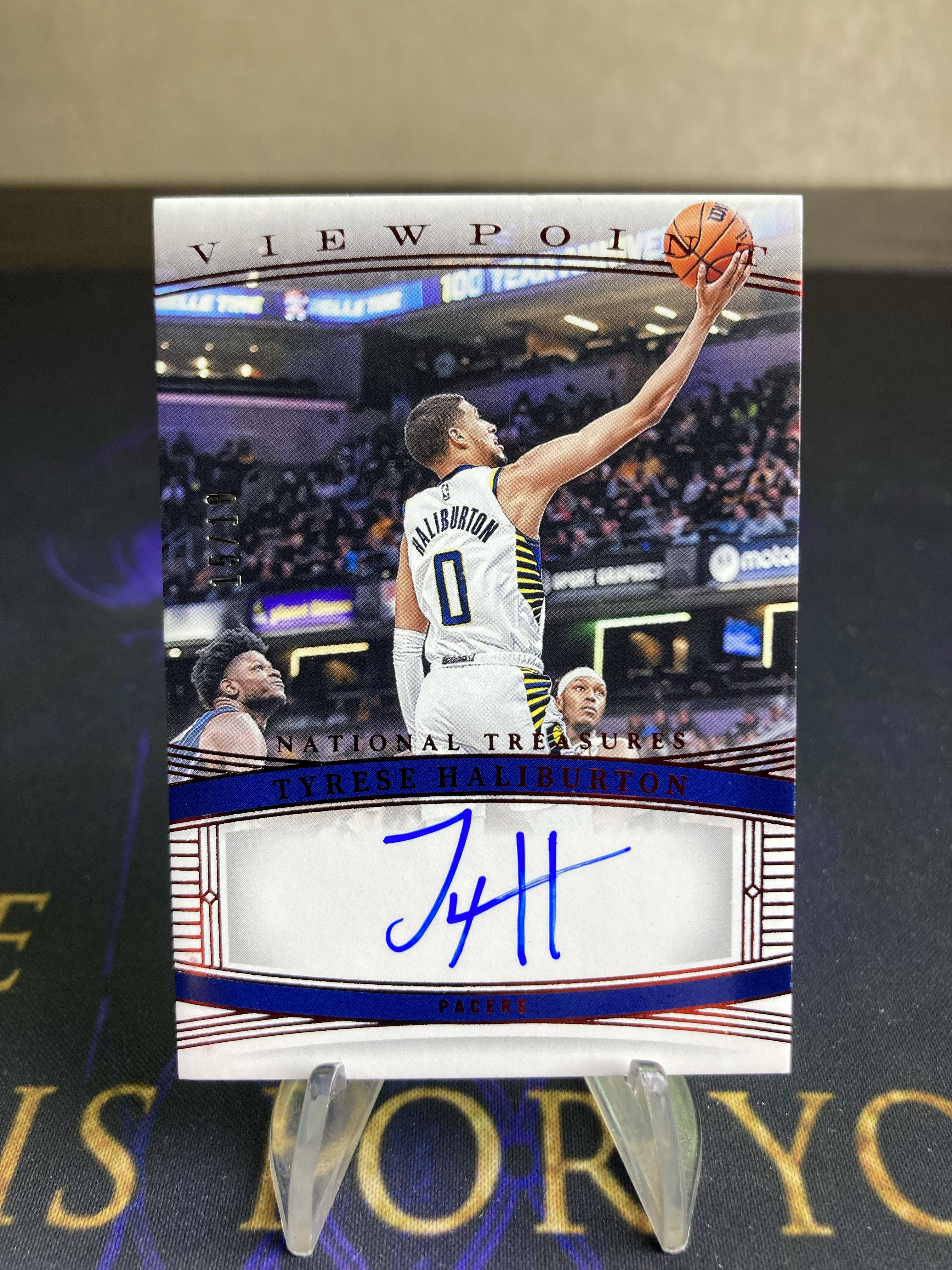 2023-24 Panini National Tyrese Haliburton 【星卡优转】国宝系列 步行者 哈利伯顿 哈里伯顿 15/18编 签字 卡签 视角签 红平行 专收必备 微瑕如图 邓