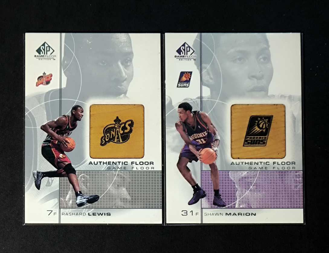2001 Upper Deck SP Game Floor Edition Shawn Marion 太阳 肖恩-马里昂 超音速 拉沙德-刘易斯 球队logo地板实物卡 2张lot 打包 实卡很美