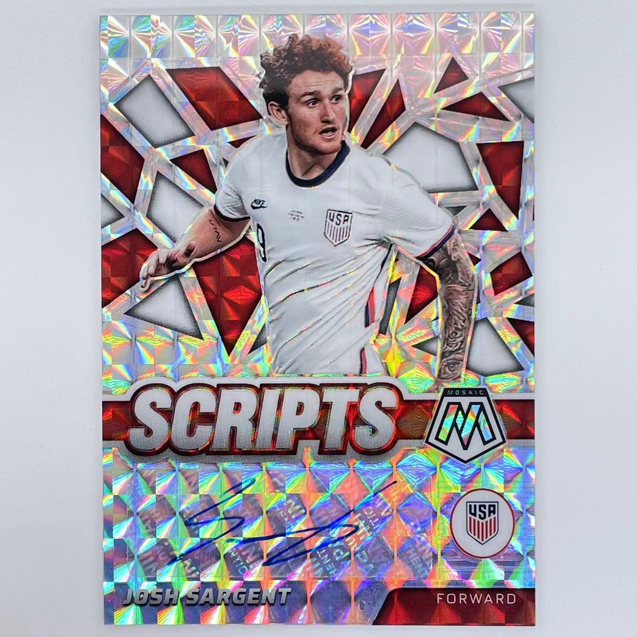 A+ 2021-22 Panini Mosaic FIFA Josh Sargent 乔什 萨金特 美国 诺维奇 世界杯 马赛克 签字 签名 Scripts 特卡 银折 折射 轻印如图 济南Q#