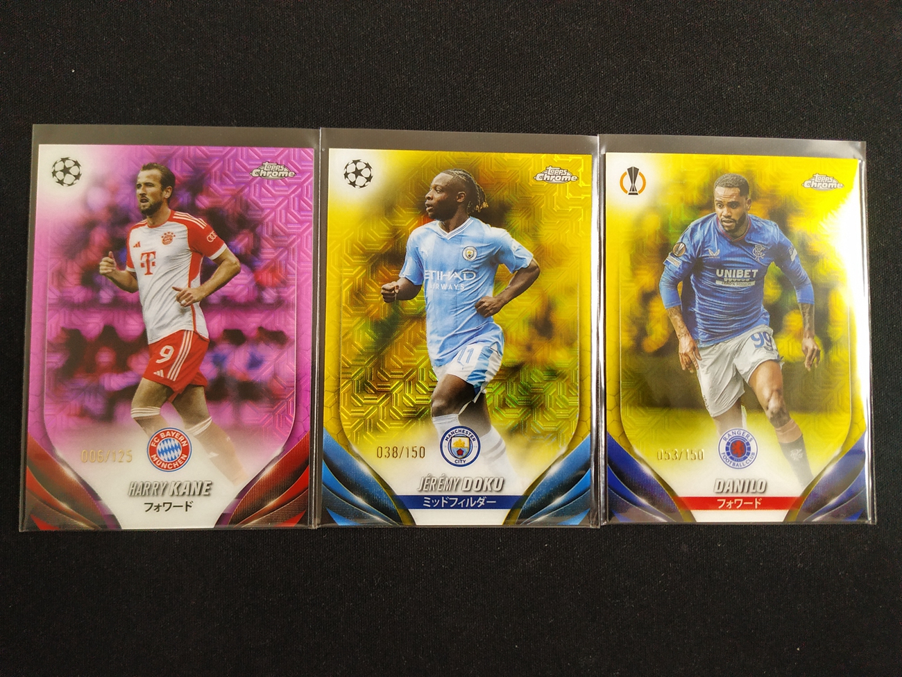 6-17【钢蛋儿拍卖】abcx 937 topps 2023-24 UCC Chrome 日版 樱花版 拜仁 3张 mojo粉折 125编 mojo黄折 150编 哈里 凯恩 Kane 多库 Doku 达尼洛 Danilo