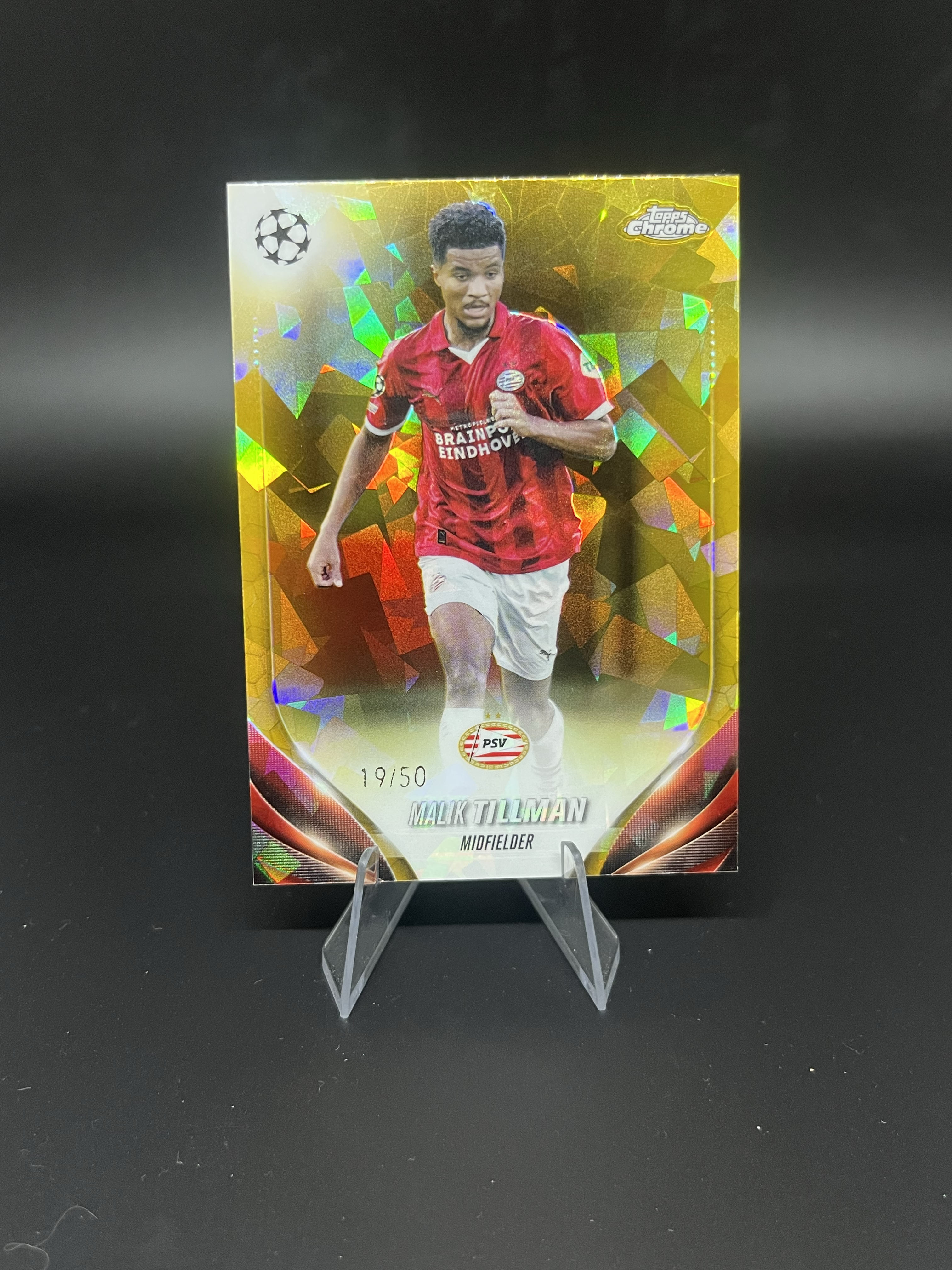 【蓉城拍卖】2024 Topps Chrome Malik Tillman Chrome 欧冠蓝宝石 埃因霍温 蒂尔曼 19/50编 金碎冰 火腿
