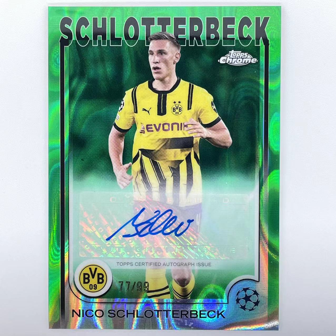 2024-25 Topps Chrome Nico Schlotterbeck 欧冠TC 德国 多特 尼科 施洛特贝克 签字 99编 绿熔岩折 穆夏拉维尔茨吉滕斯迪朗维尔阿德耶米拜尔魏特延队友 C