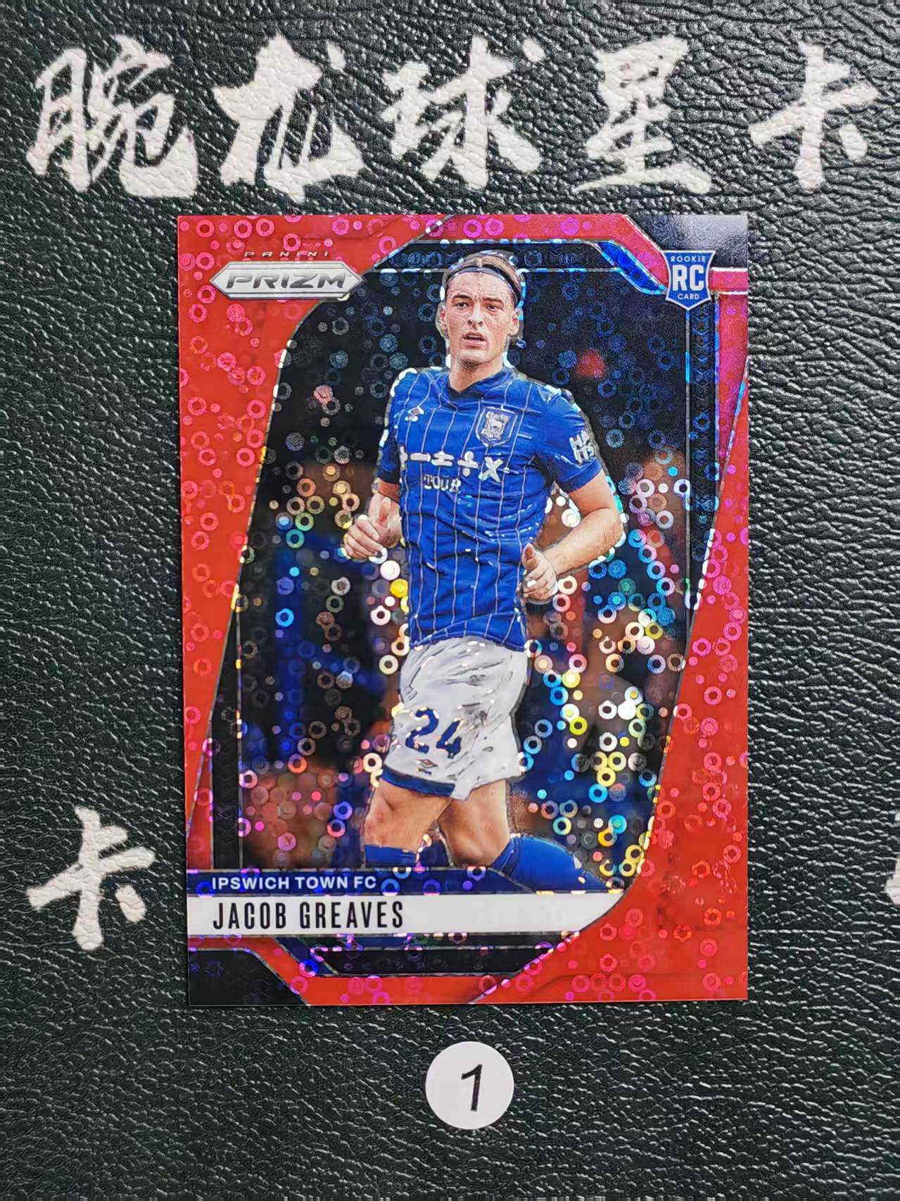 2024-25 【腕龙拍卖 接代卖】 腕龙Hanwaii Panini Prizm 英超PZ 雅各布 格雷夫斯 伊普斯维奇 RC新秀 红泡泡折 5/49编 JACOB GREAVES卡品如图 收藏必备