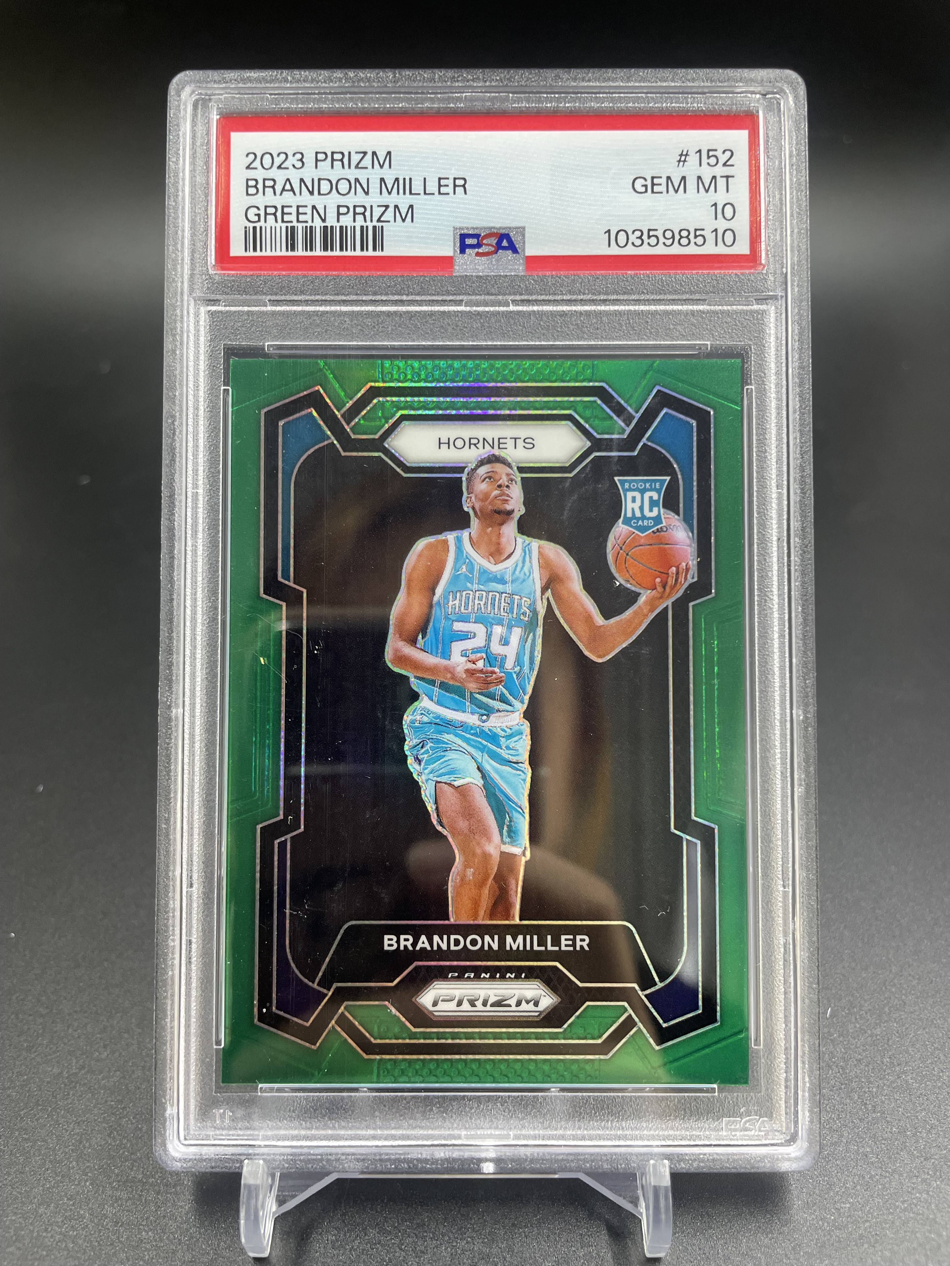 2023-24 Panini Prizm Brandon Miller RC 2【超级拍卖】PZ 布兰登 米勒 黄蜂 新秀 折射 绿折 PSA10 评级卡 有划痕