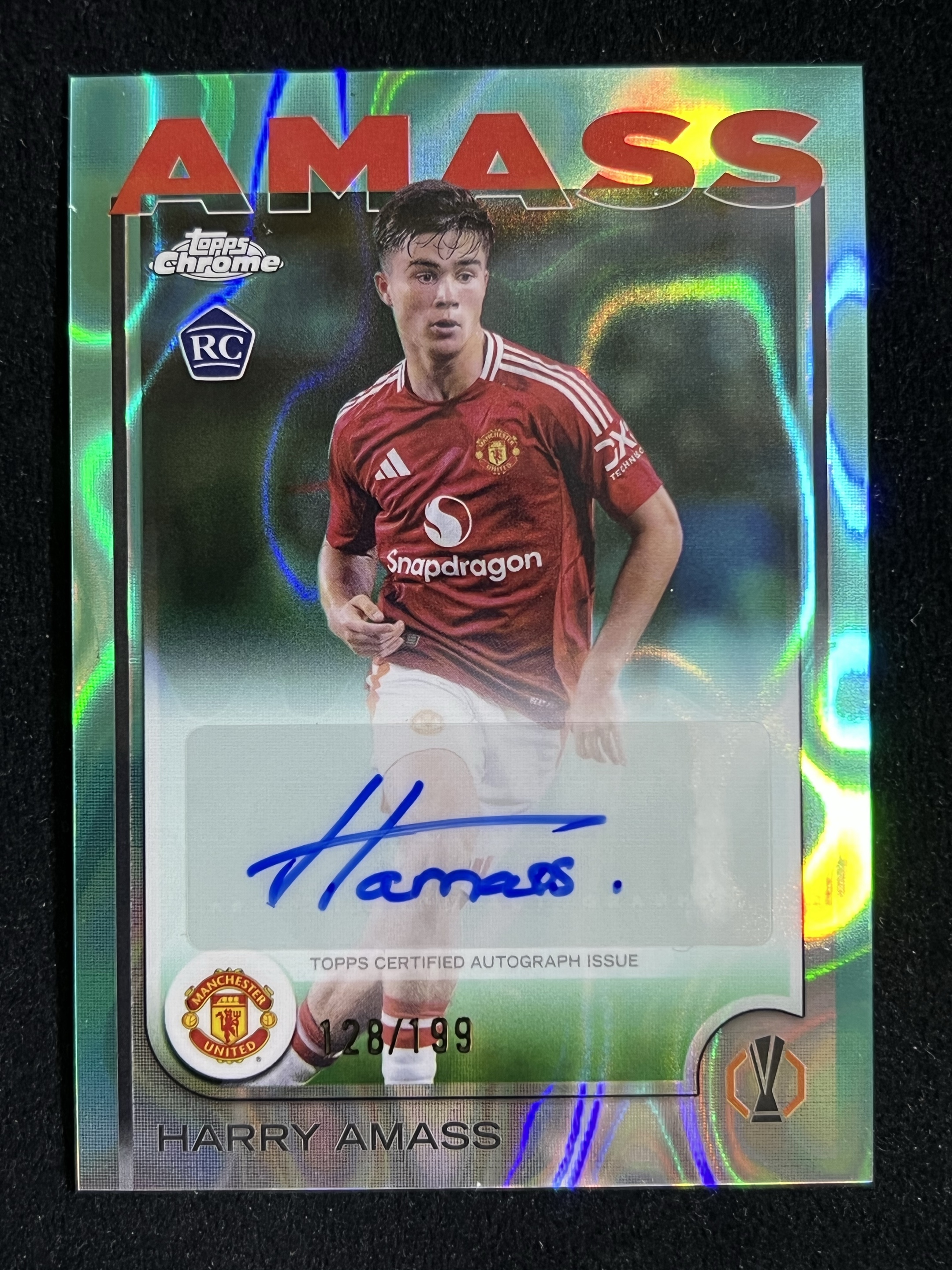 【Lucky幸运壹编壹代拍-BL】2024-25 Topps Chrome UCC欧战足球 哈里 阿马斯 Harry Amass 128/199编青绿熔岩折射新秀签字 曼联 曼彻斯特联RC 品相见图