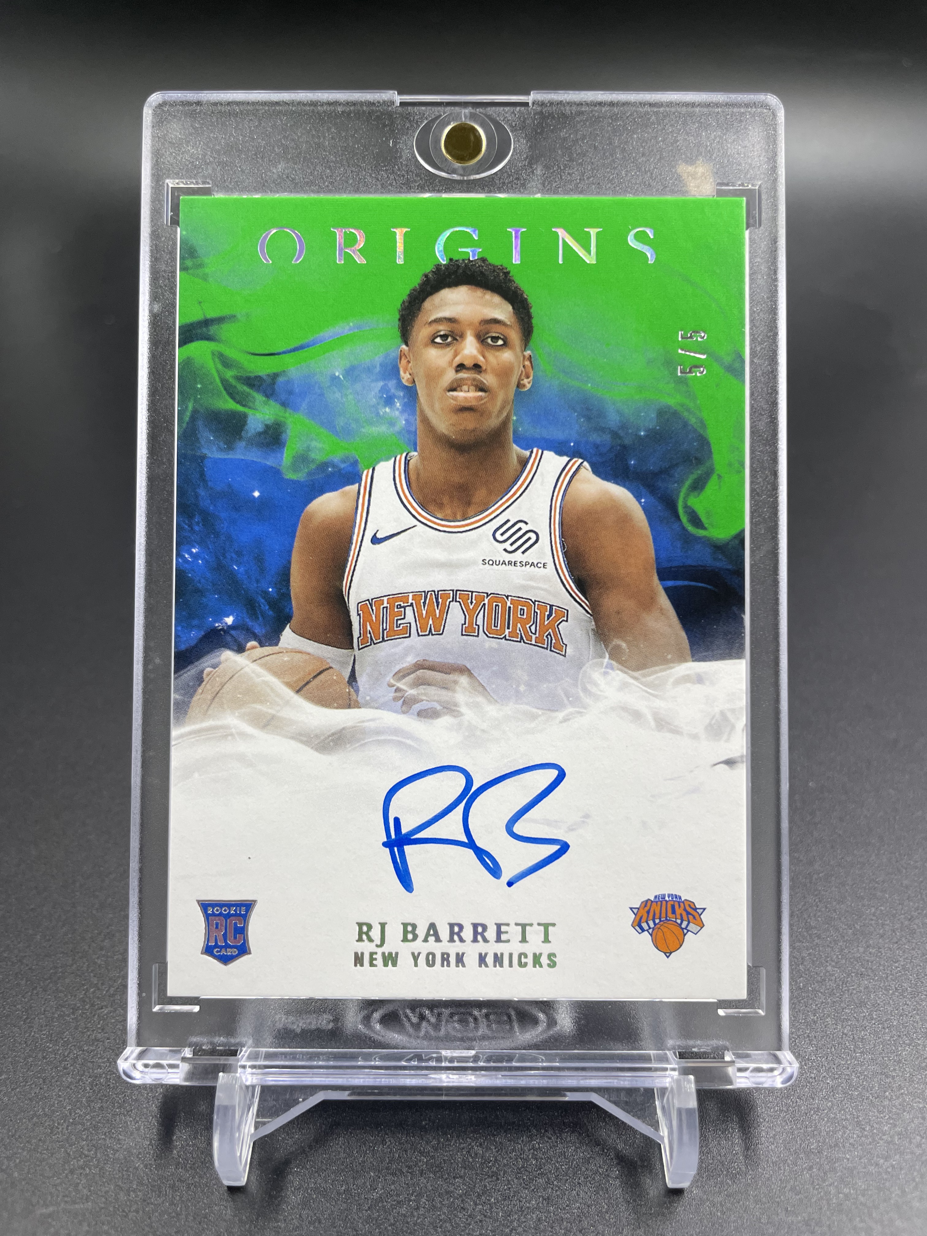 2019-20 Panini Origins R.J. Barrett RC 12【超级拍卖】起源 RJ 巴雷特 大狙 尼克斯 新秀 折射 绿平行 签字 卡签 低编 尾编 5/5编 角微瑕 边角微白