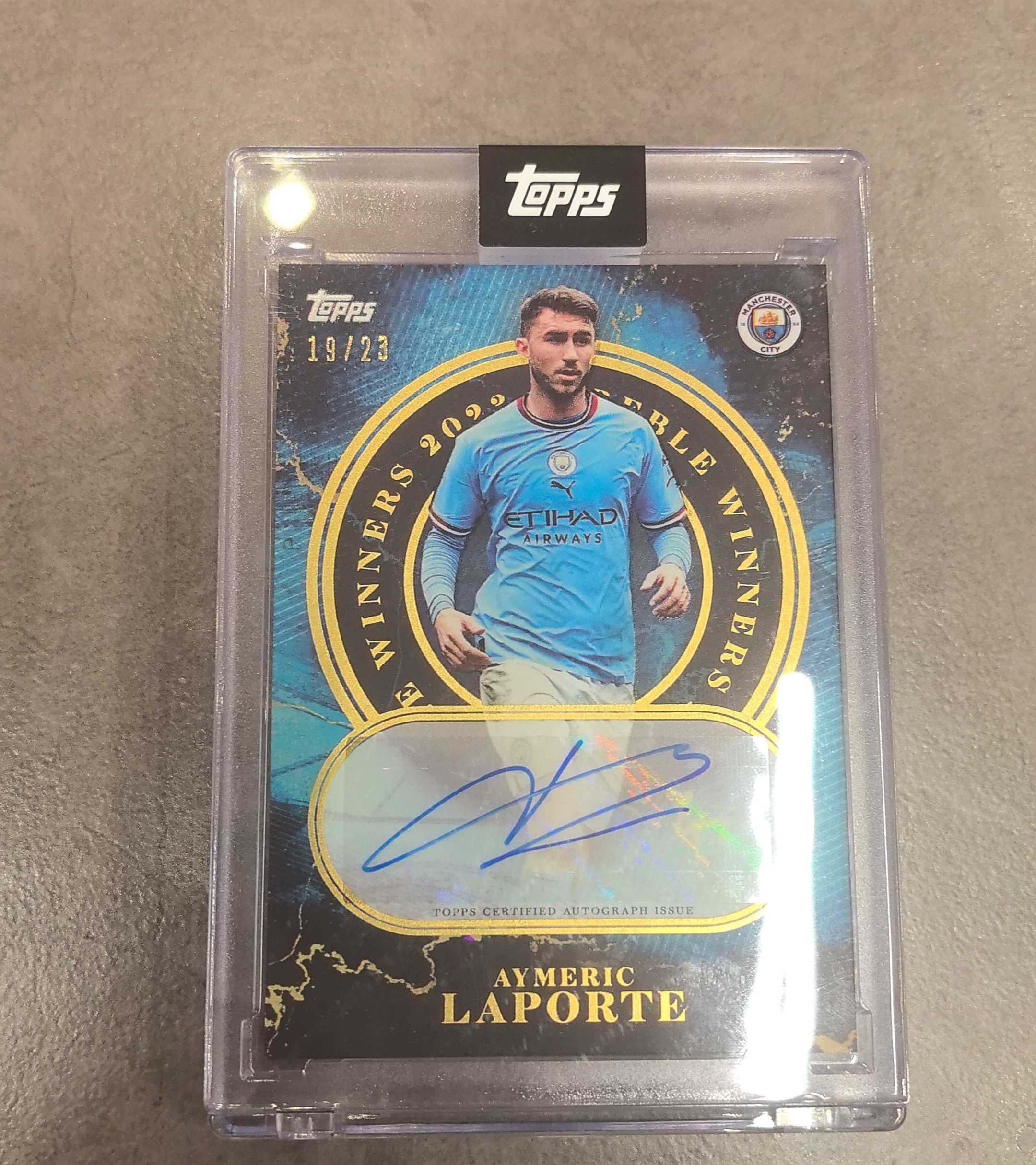 2023 Topps 曼城足球俱乐部 Aymeric Laporte 三冠王 Treble Winners 拉波尔特 西班牙 曼城 19/23编 原封砖 卡品如图 签字 签名卡