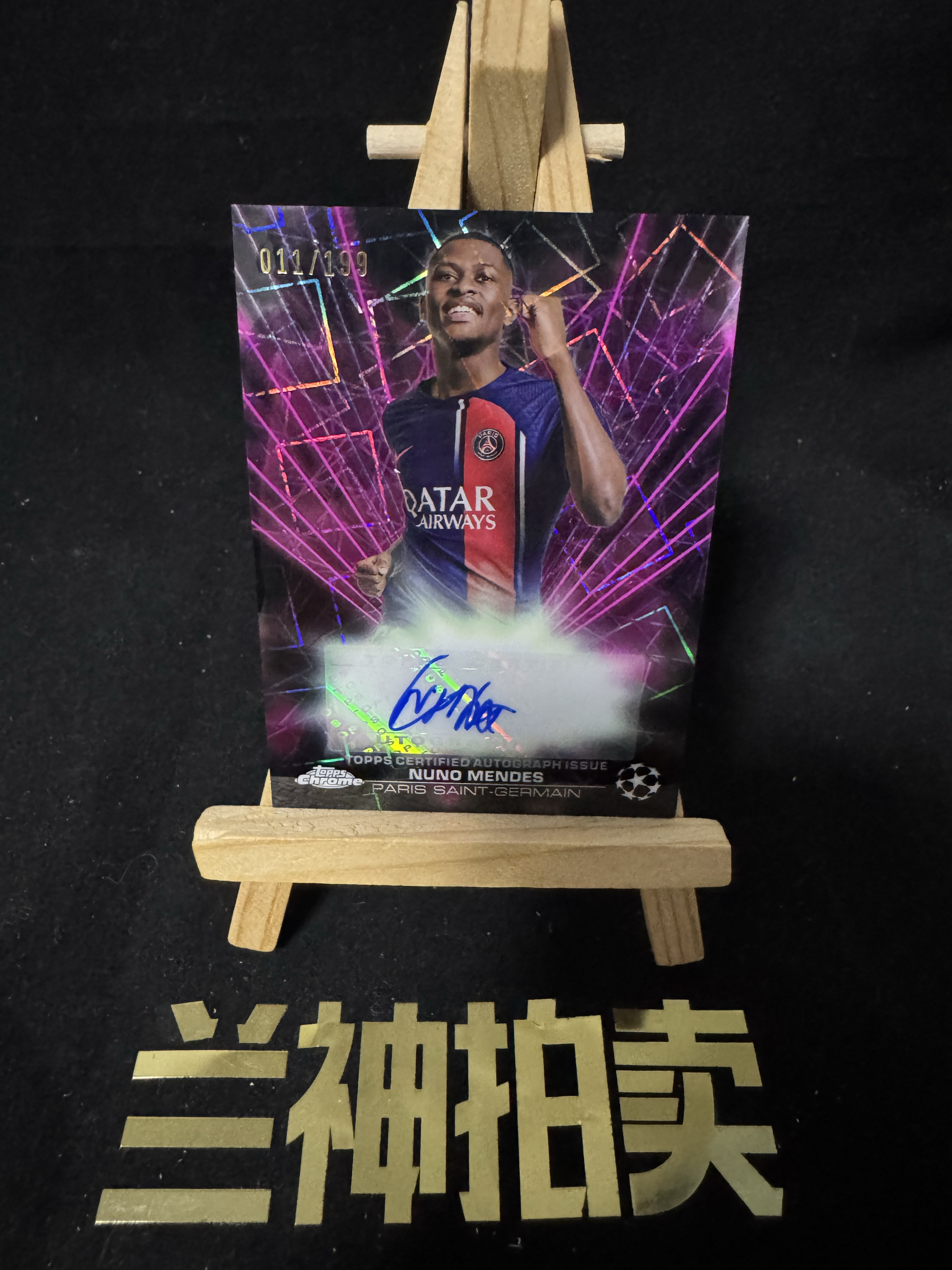 2023-24 Topps Chrome Nuno Mendes 【兰神拍卖】欧冠 努诺 门德斯 巴黎圣日尔曼 葡萄牙 签字 黑镭射折 签字 199编 粉折 jumbo 独占 base 折射