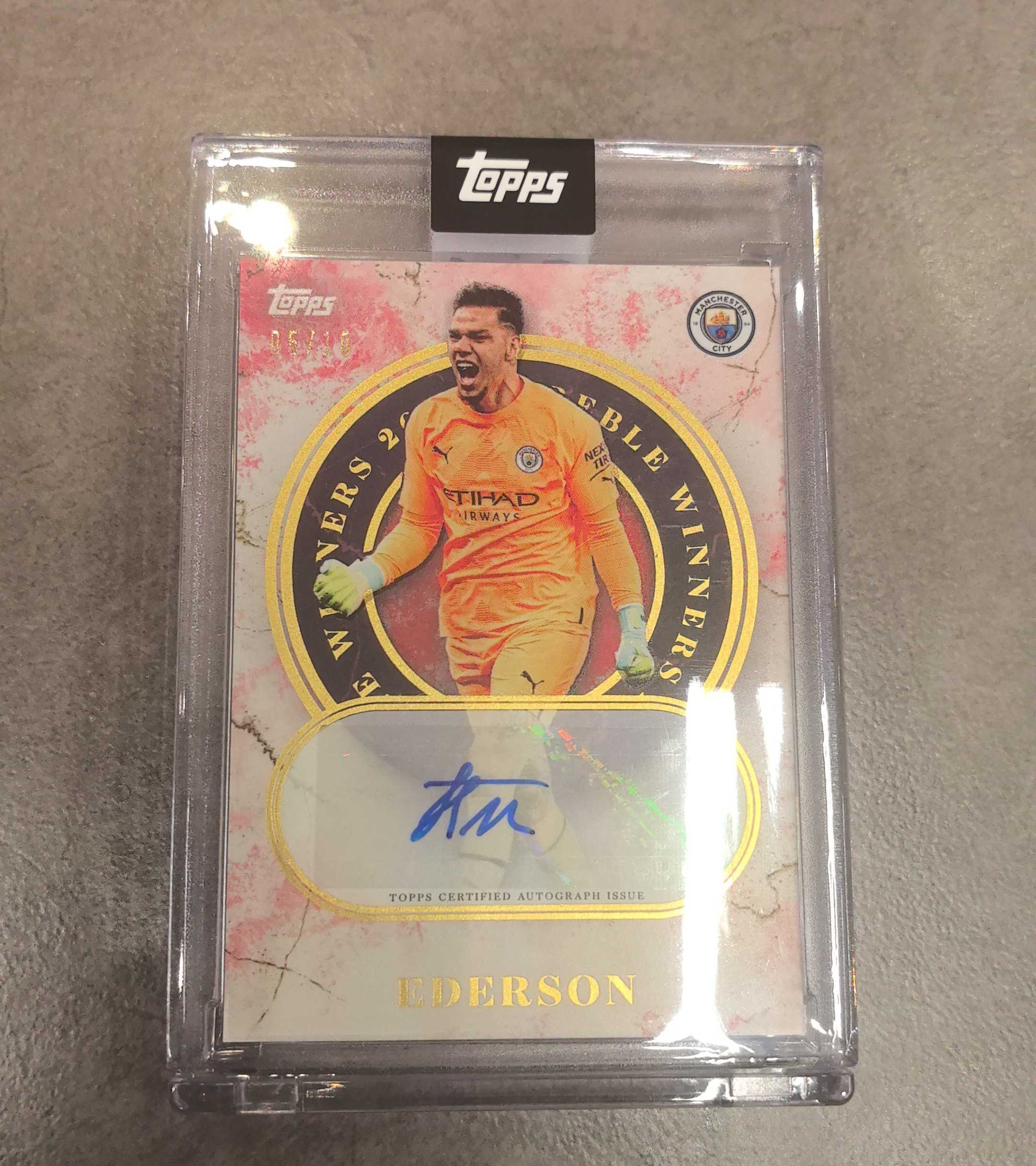 2023 Topps 曼城足球俱乐部 Ederson 三冠王队盒 Treble Winners 巴西 埃德森 曼城 10编 红折 超低编 原封砖 卡品如图 签字 签名卡