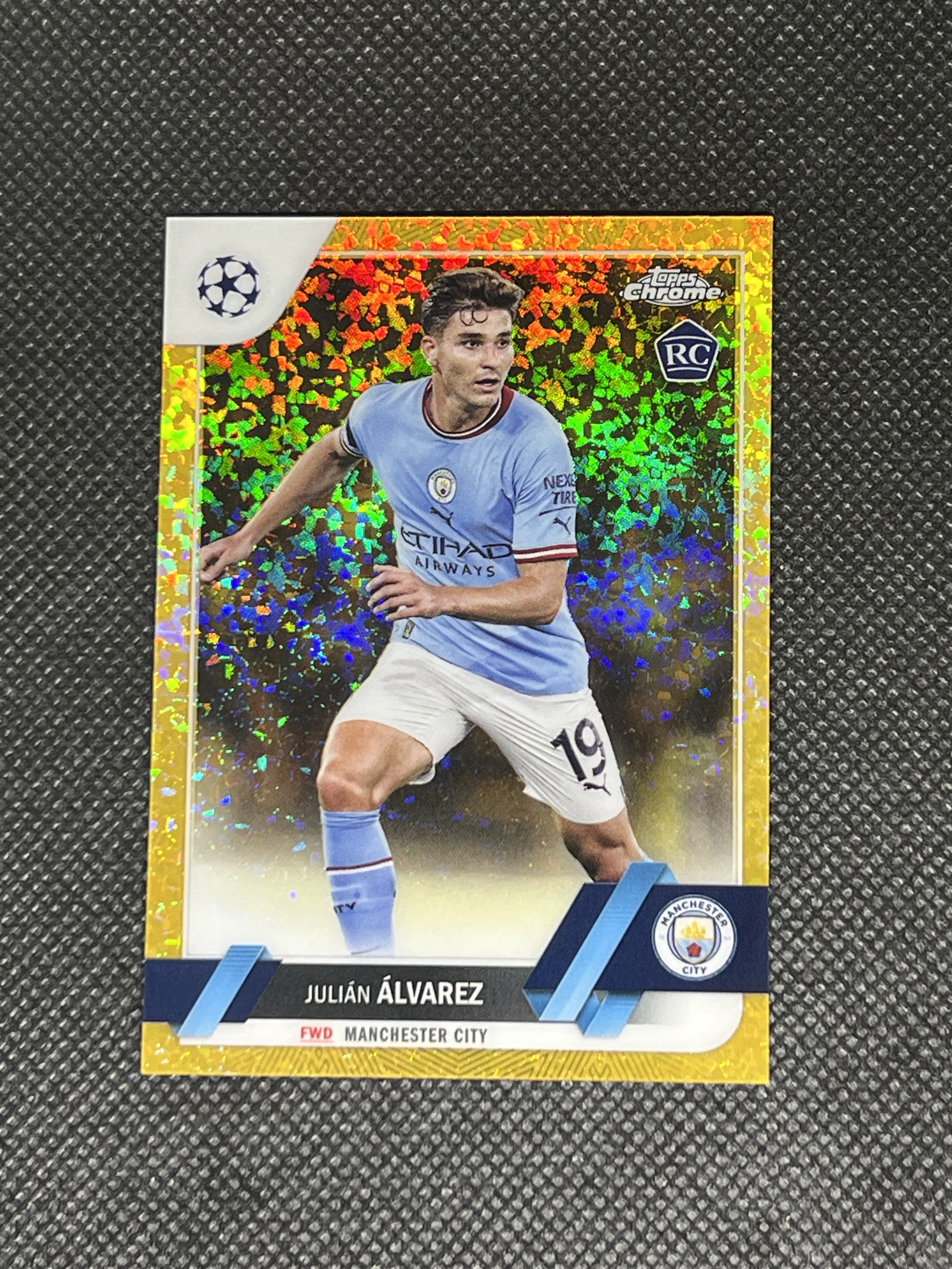 2022 Topps Chrome Julián Álvarez RC 欧战Chrome 阿根廷 曼城 新秀 马竞 小蜘蛛 阿尔瓦雷斯 金碎点折 50编 实卡好看 TXF-Z9856