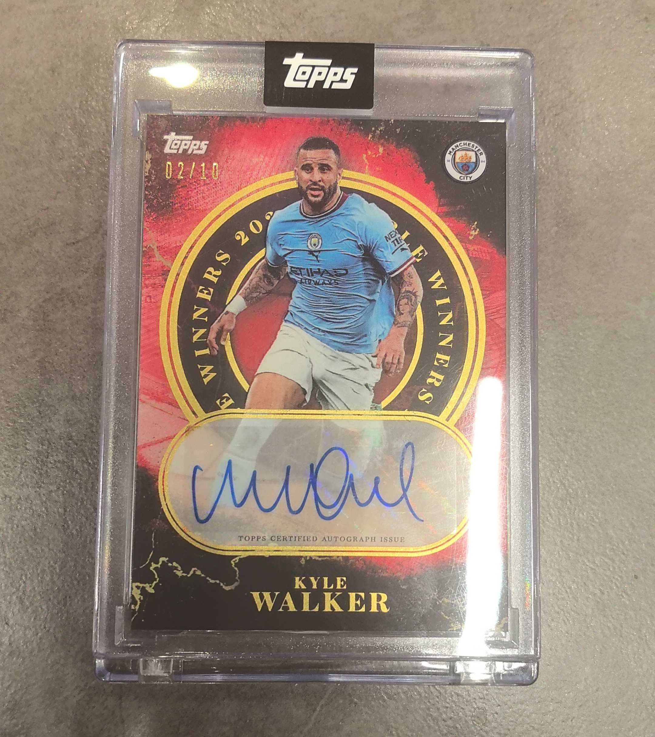 2023 Topps 曼城足球俱乐部 Kyle Walker 三冠王队盒 Treble Winners 英格兰 凯尔沃克 曼城 2/10编 红折 超低编 原封砖 卡品如图 签字 签名卡
