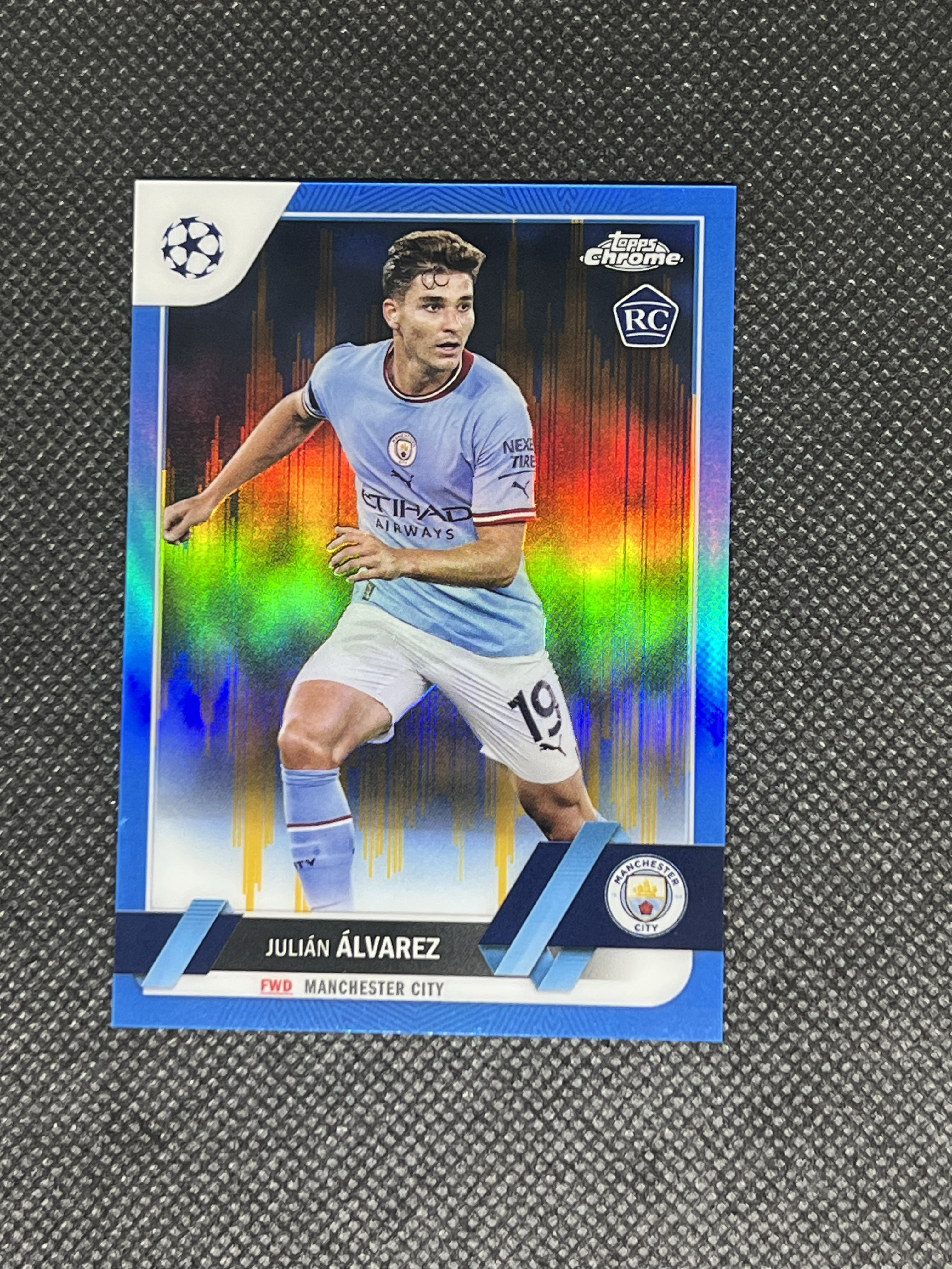 2022 Topps Chrome Julián Álvarez RC 欧战Chrome 阿根廷 曼城 新秀 马竞 小蜘蛛 阿尔瓦雷斯 蓝折 75编 实卡好看 TXF-Z9856
