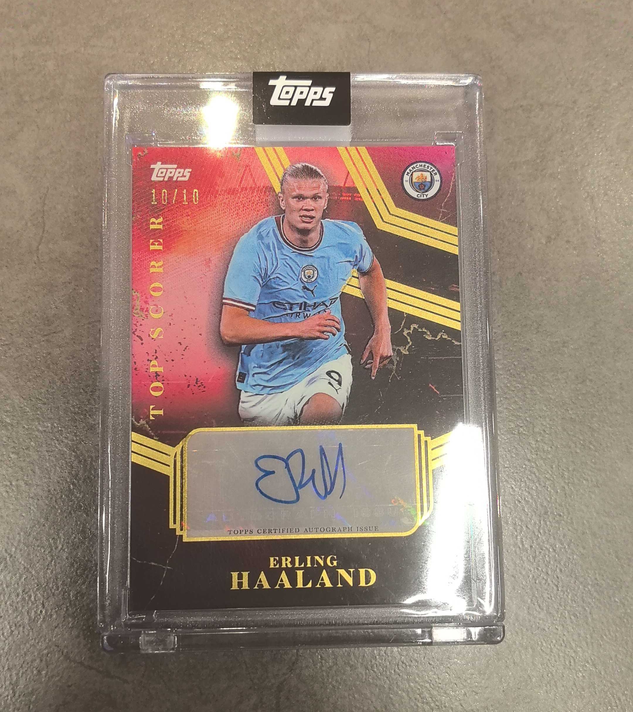 2023 Topps 曼城足球俱乐部 Erling Haaland 三冠王队盒 Treble Winners 挪威 埃尔林哈兰德 曼城 10/10编 红折 尾编超低编 原封砖 卡品如图 签字 签名卡
