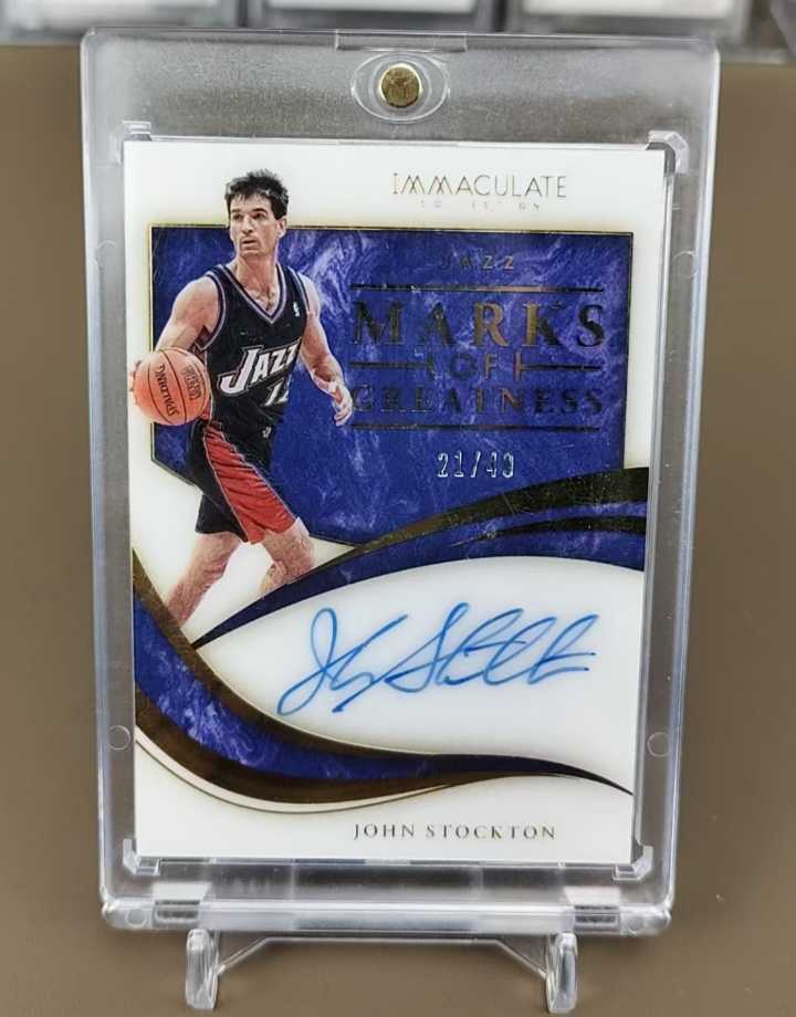 2019-20 Panini Immaculate John Stockton 爱咪咪 爵士 约翰 斯托克顿 签字 卡签 21/49编 镜面 卡尔马龙队友 75大球星 瑕疵如图 本卡不支持合并 介意勿拍