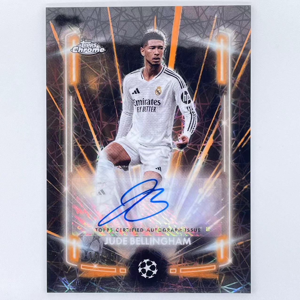 J+ 2024-25 Topps Chrome Jude Bellingham 祖德 贝林厄姆 皇马 英格兰 多特蒙德 大英帝星 欧冠 TC 10/25编 签字 橙激光折 橙镭射折 Jumbo独占折射 轻印如图 众孚Verg#
