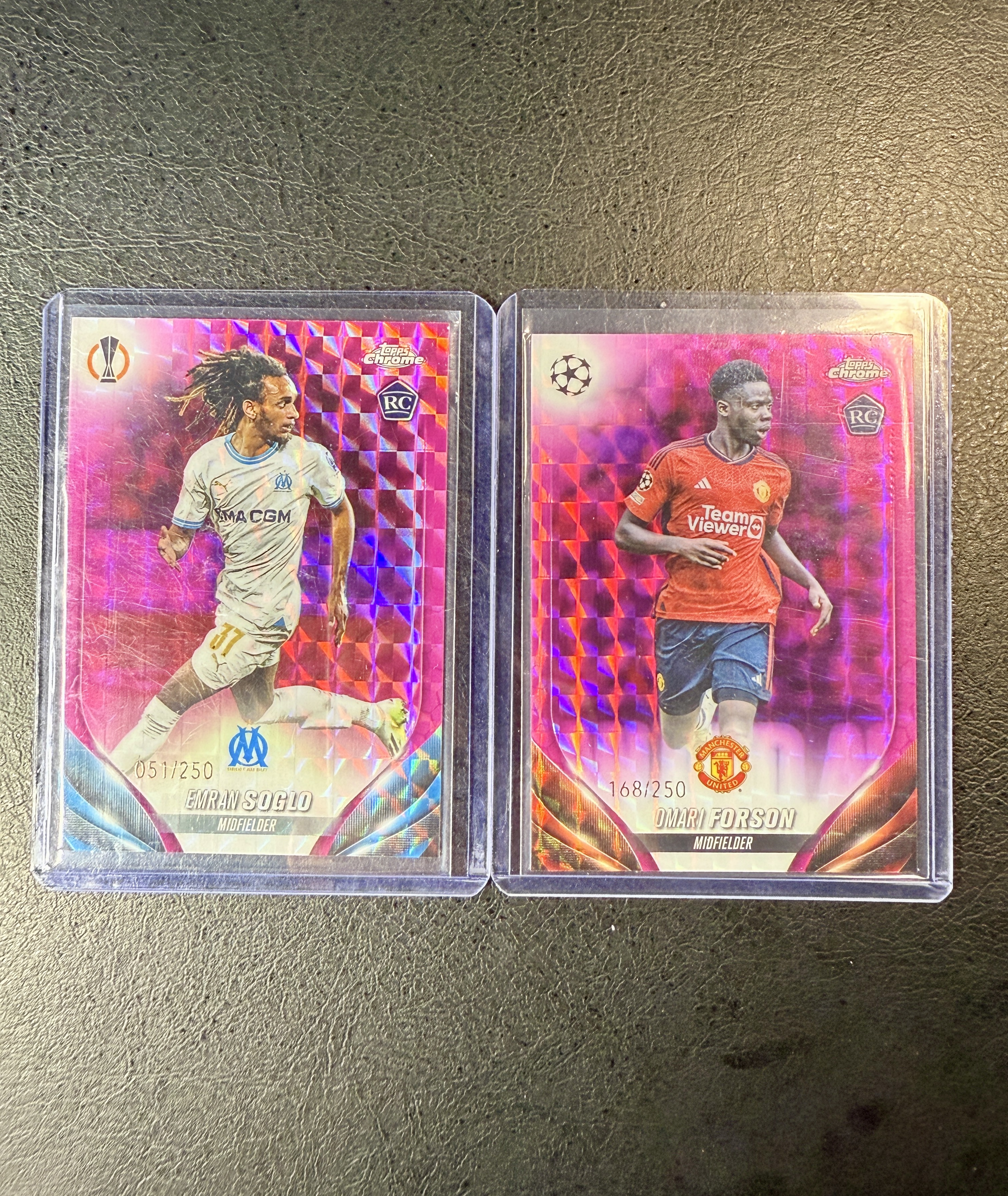 2023-24 Topps chrome Omari Forson RC 【纯粹代卖】奥马里 福森 艾姆兰 索格洛 折射 新秀 粉马赛克折 250编 曼联 马赛 两张打包(em